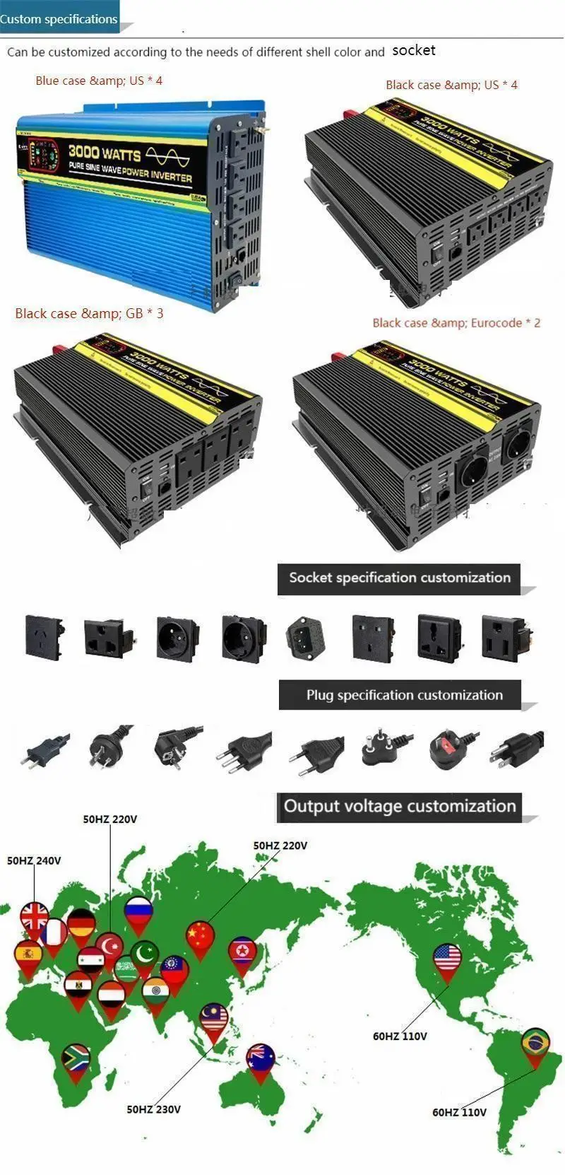 Инвертор синусоидальной волны 4000 Вт 2 USB DC 12 В в AC 220110 В, ...