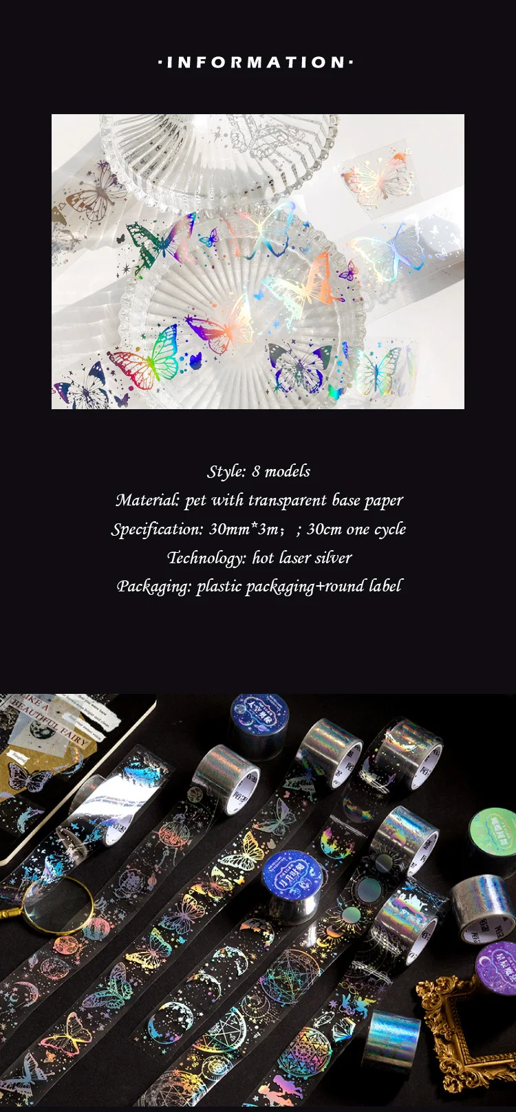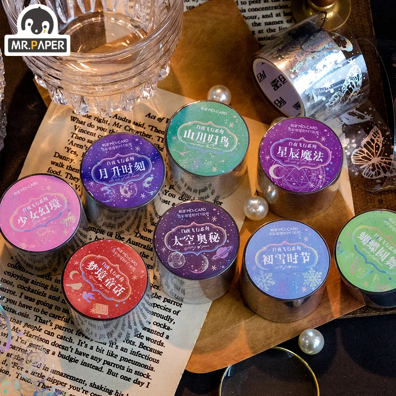 Mr. Paper 8 дизайн белая ночная Летающая серия креативный PETPET Горячая Серебряная Лазерная лента украшение скрапбук ручная учётная запись сделай сам