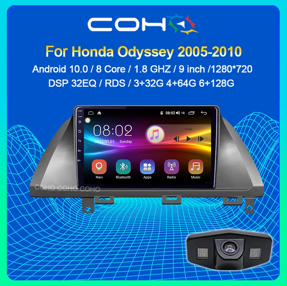 Автомобильный радиоплеер COHO для Honda Odyssey 2005-2010 Android 10,0 4G GPS-навигация Восьмиядерный 6 ГБ + 128 Гб радио мультимедиа