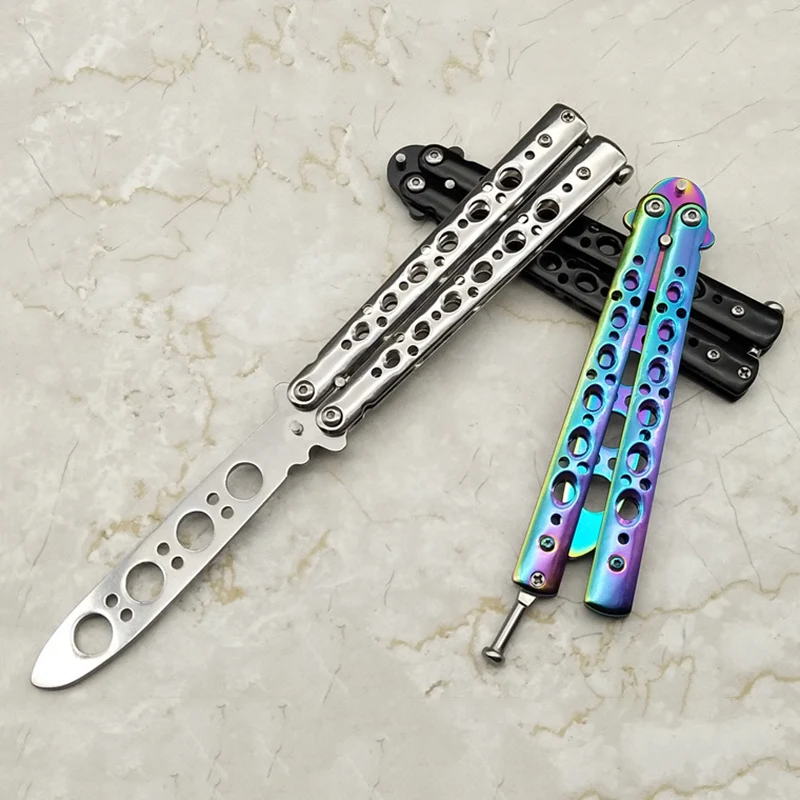 1. Подходит для начинающих учиться и ощущается сильным. Лезвия не имеют краев и светильник, вы можете практиковаться, не повреждая их; На ручке есть зажимы, которые удобно носить с собой2. Безопасная, высококачественная металлическая ручка, прочная на ощупь, ручка имеет балансирующее отверстие для плавного поворота.3. Ручка имеет более прочный процесс мойки камня. Регулируемые Пружинные защелки ручки могут зафиксировать ручку. Если вашему другу также нравится тренажер для бабочек, вы можете подарить его друзьям, они могут практиковать его без вреда.4. Примечание: изделие может иногда отваливаться, потому что его отпускают для практики, вам нужно всего лишь использовать отвертку для фиксации. В этом тренажере для бабочек используются высококачественные материалы, чтобы научиться использовать что-либо без порезов или синяков.5. Цвет изделия многоцветный. Общая длина 21 см/8,27 дюйма; Длина лезвий 9,5 см/3,74 дюйма; Длина ручки 11 см/4,33 дюйма; Толщина лезвий 0,25 см/0,11 дюйма; ширина лезвий 1,8 см/0,71 дюйма.