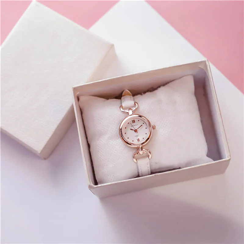 Женские Простые кварцевые наручные часы для девочек с ремешком из искусственной кожи, часы с тонким циферблатом B99