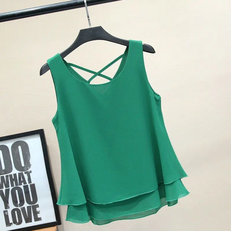 MOYISU женские шифоновые блузки размера плюс 6XL 2022 новые летние свободные рубашки без рукавов топы Blusa de talla grande