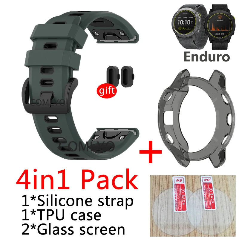 Быстросъемный ремешок 4 в 1 для Garmin Enduro, силиконовый браслет для Enduro, чехол + Защитное стекло для экрана + Пылезащитная заглушка
