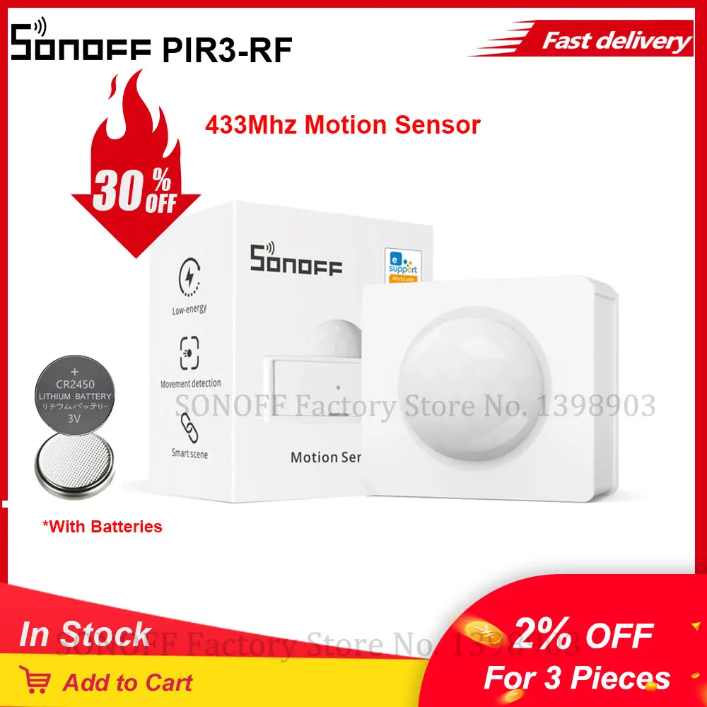 Датчик движения SONOFF PIR3-RF 433 МГц с аккумулятором, работает с Sonoff RF Bridge, умная сцена, двухрежимное уведомление о тревоге, умный дом