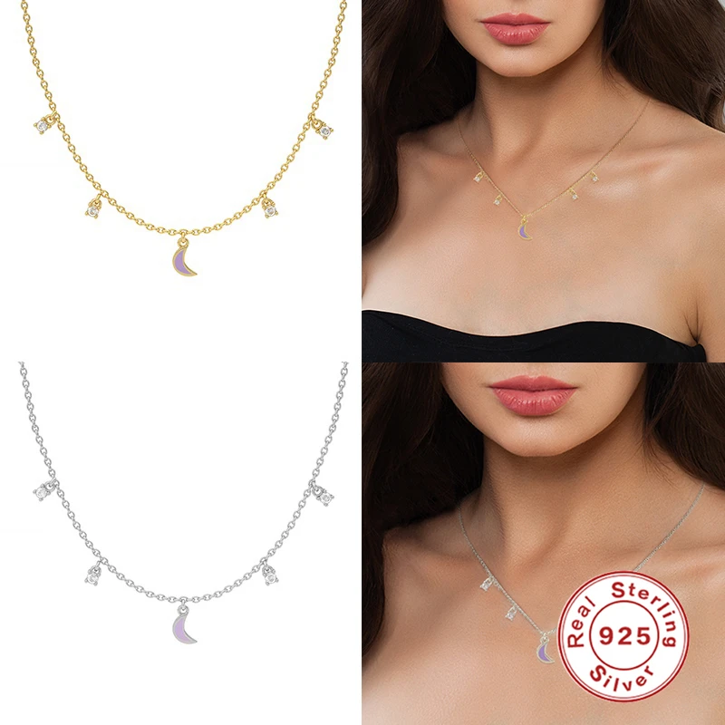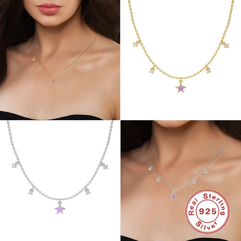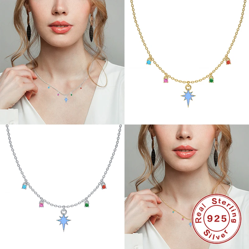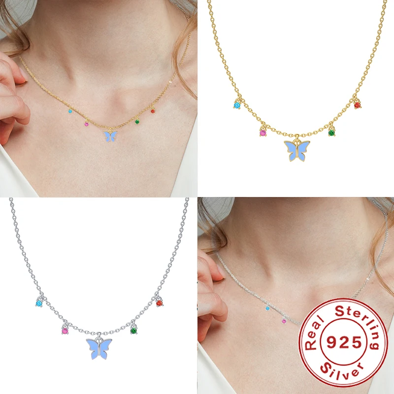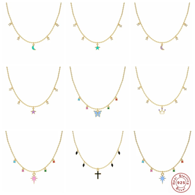 CANNER 100% Стерлинговое Серебро S925 ключицы ожерелья цепи цветная Эмаль Бабочка Крест Звезда колье с кулоном корона для женщин
