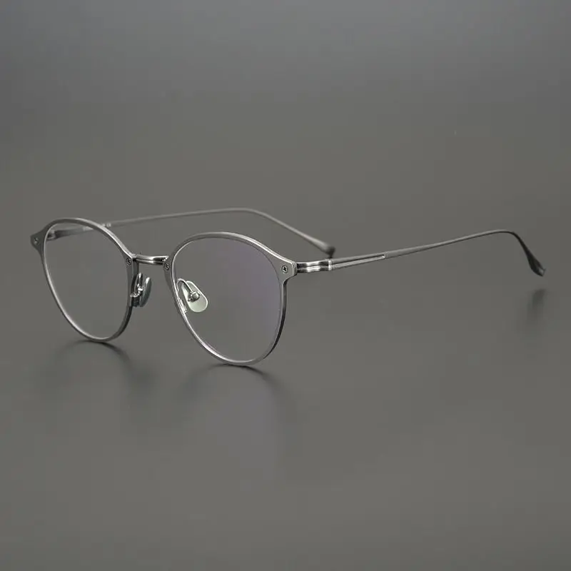 Мужские и женские очки ручной работы из чистого титана, круглая оправа, винтажные суперлегкие высококачественные очки для близорукости, Грау