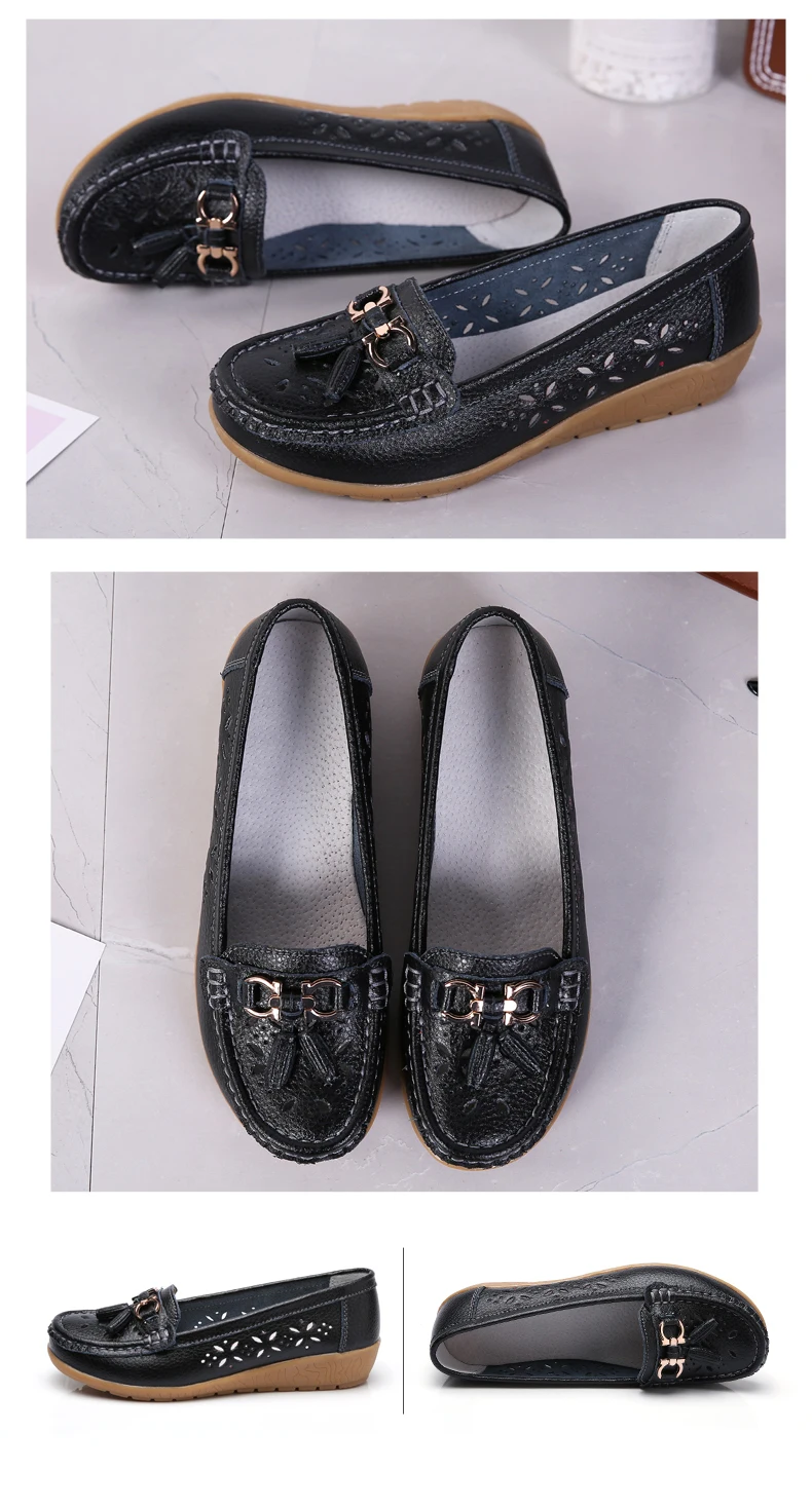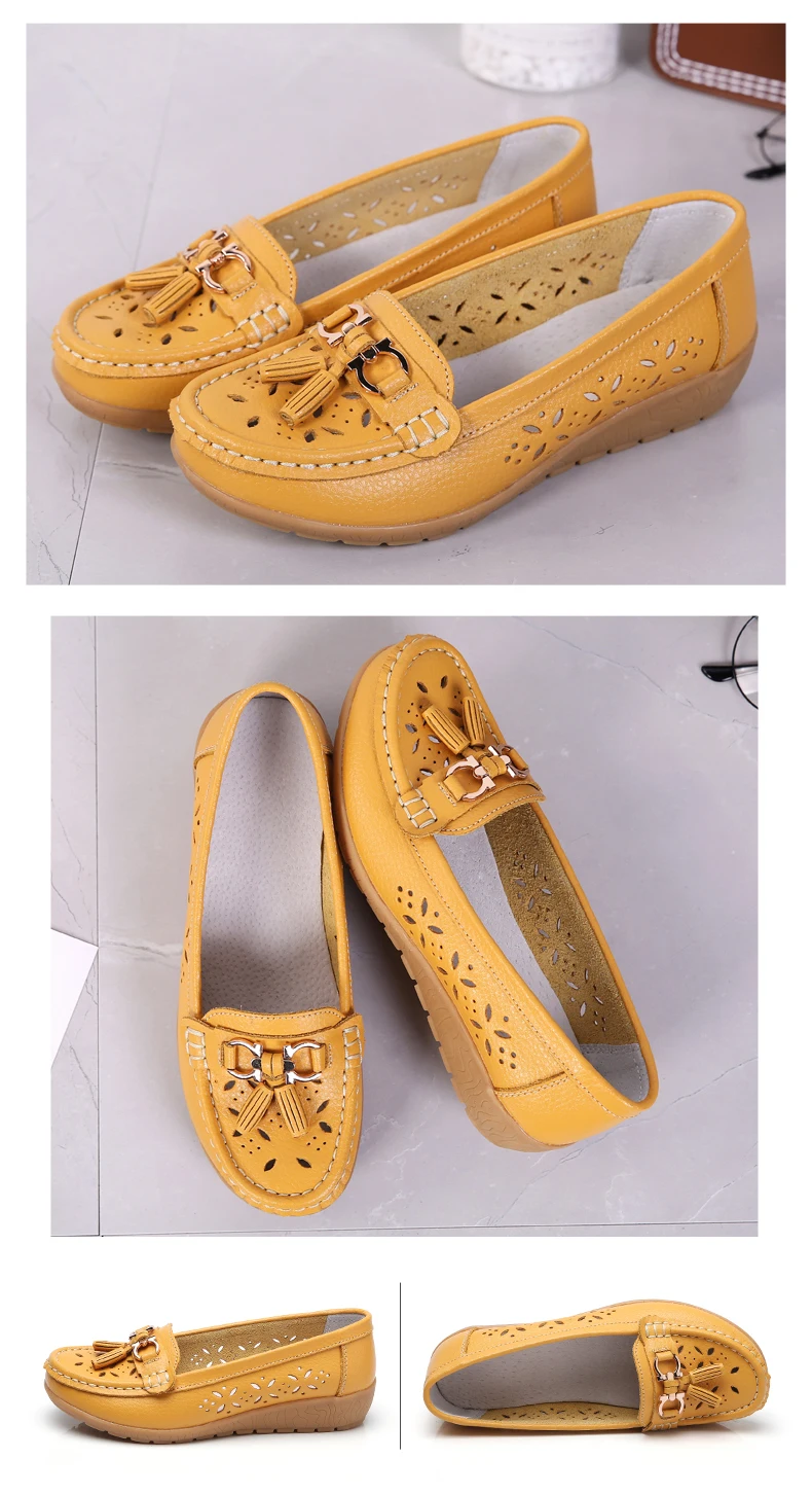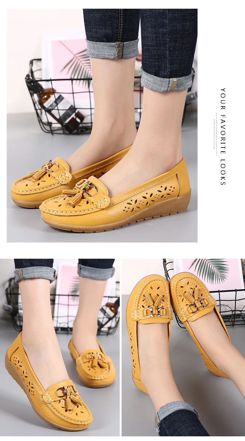 Лоферы женские из натуральной кожи, дышащие, без шнуровки, 34-44