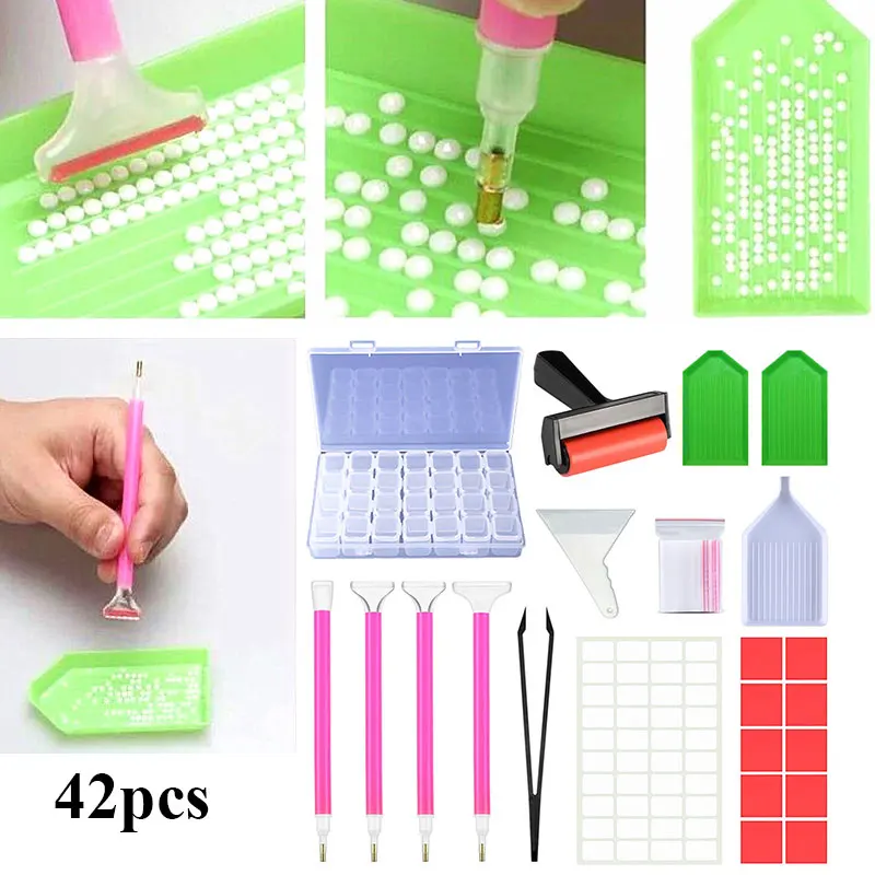 42 шт. 5D инструменты для вышивки картин со стразами компл. Роликовая ручка глиняный лоток наклейки ящик для хранения наборы для DIY Алмазная вышивка аксессуары новый