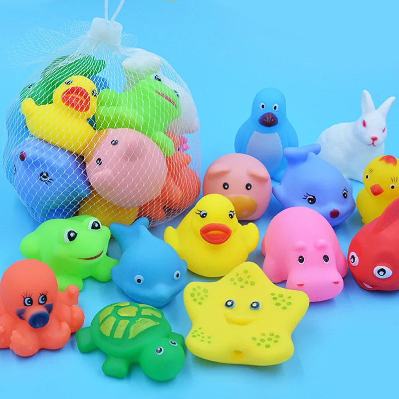 10 шт.компл. детские милые животные игрушки для купания игрушки для воды Мягкие резиновые поплавок Сжимаемый звук дети мыть играть Забавный подарок