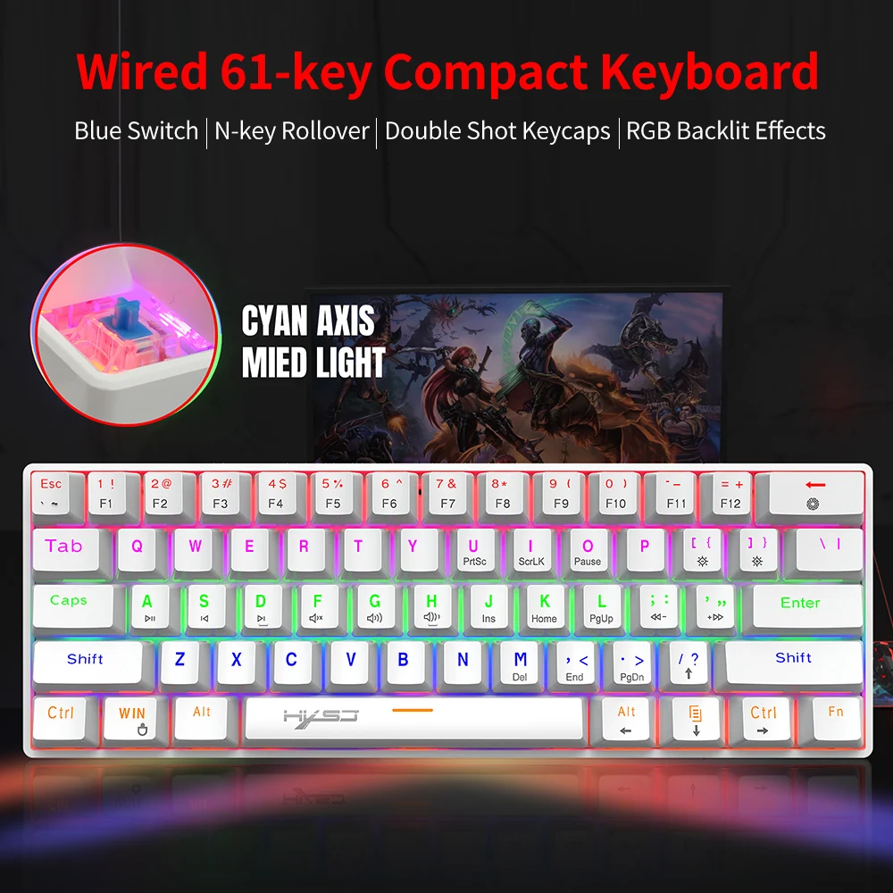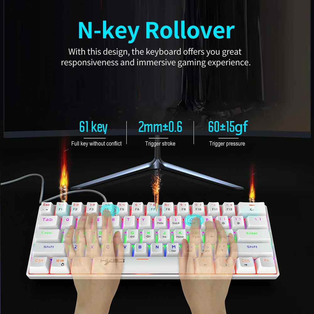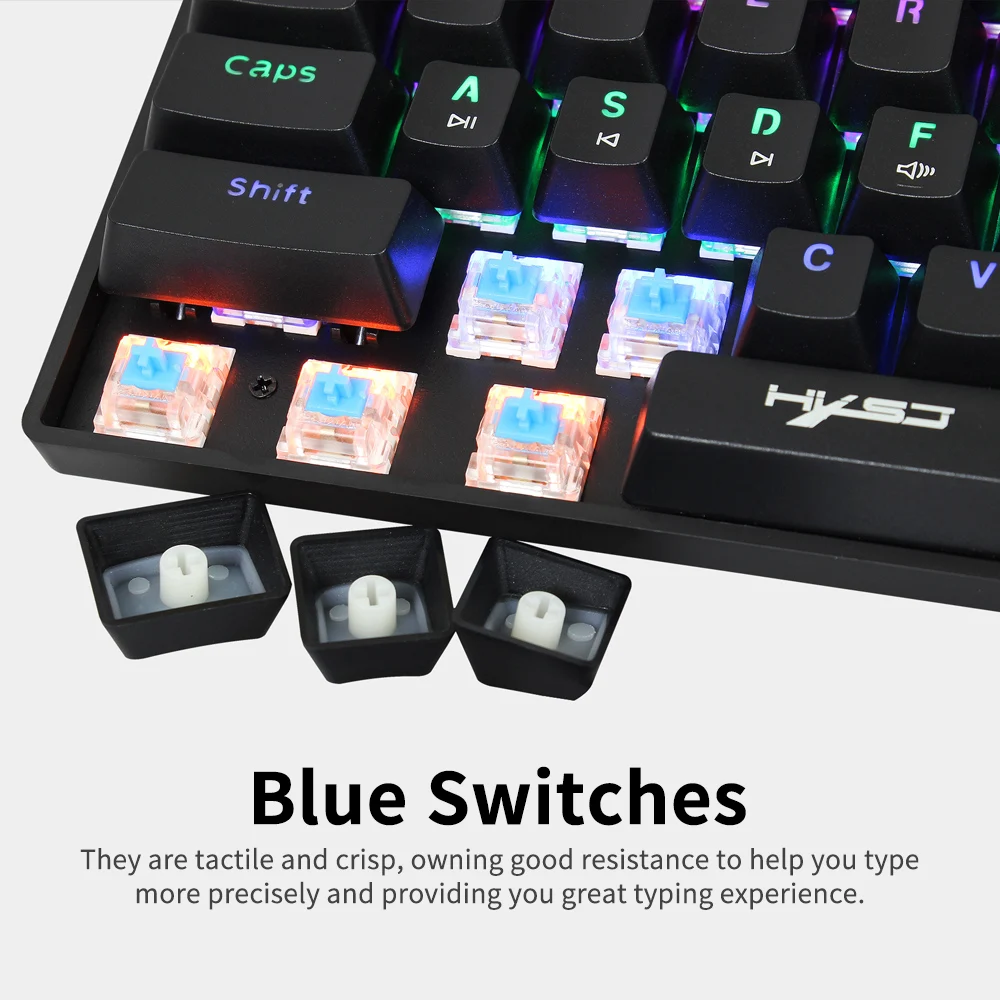 Проводная компактная механическая клавиатура HXSJ V900, 61 клавиша, клавиатура с RGB подсветкой, N-key Rollover Blue Switch, Черная