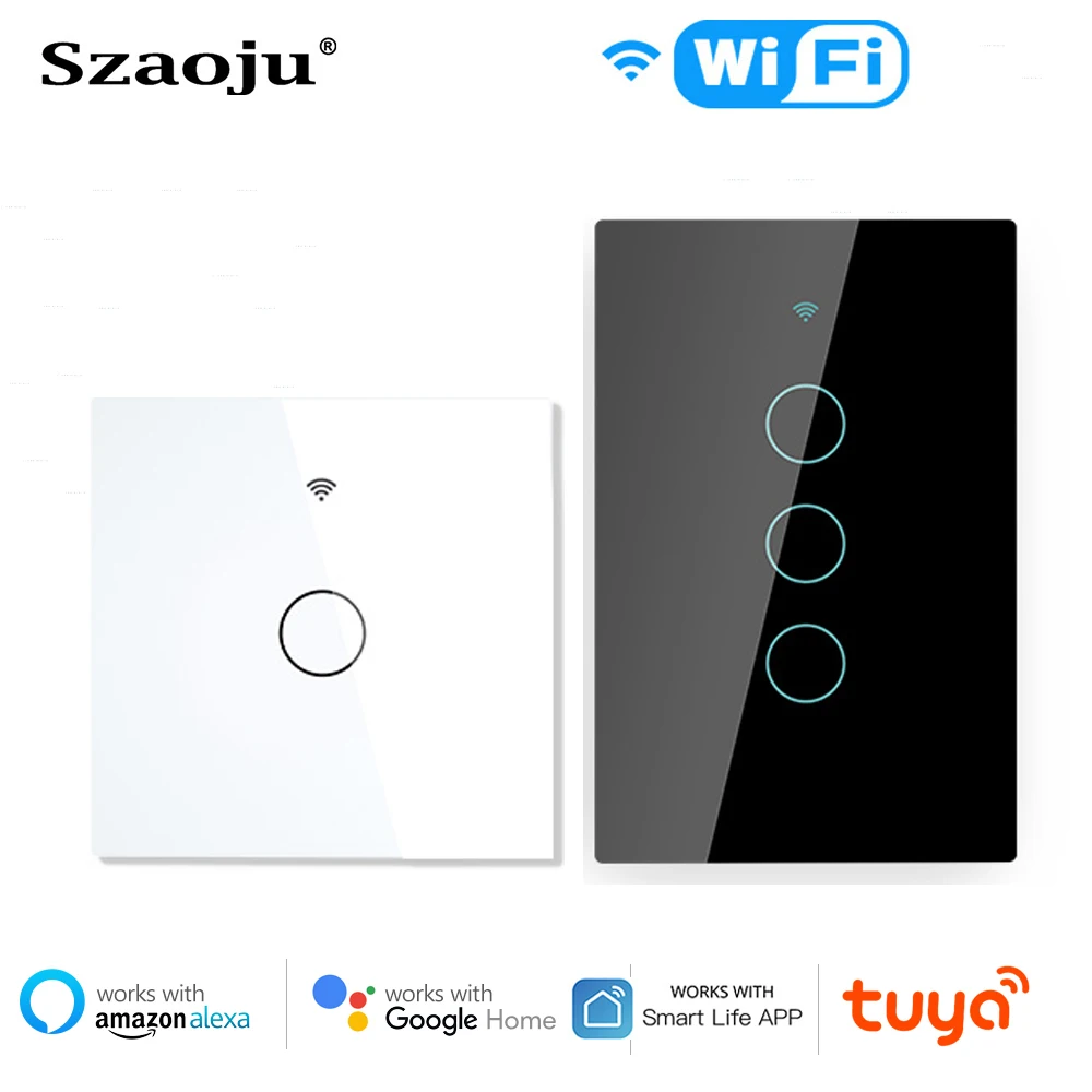 Сенсорный выключатель Szaoju Tuya с Wi-Fi, настенный смарт-выключатель с 123 клавишами, ЕССША, Alexa, Google Home, для умного дома, без нейтрального провода