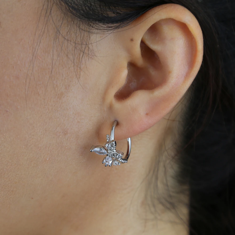 Круглые серьги-кольца с фианитами в виде бабочек, простые модные милые ювелирные украшения для девочек, 2021