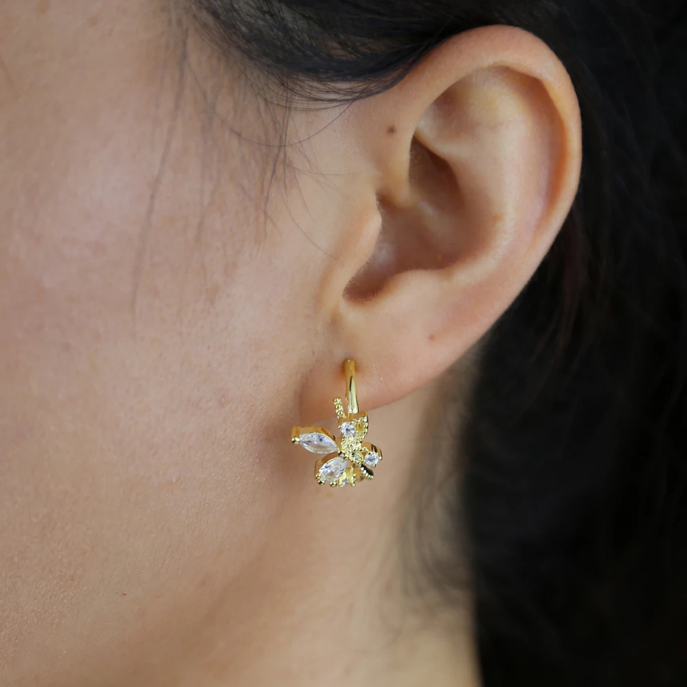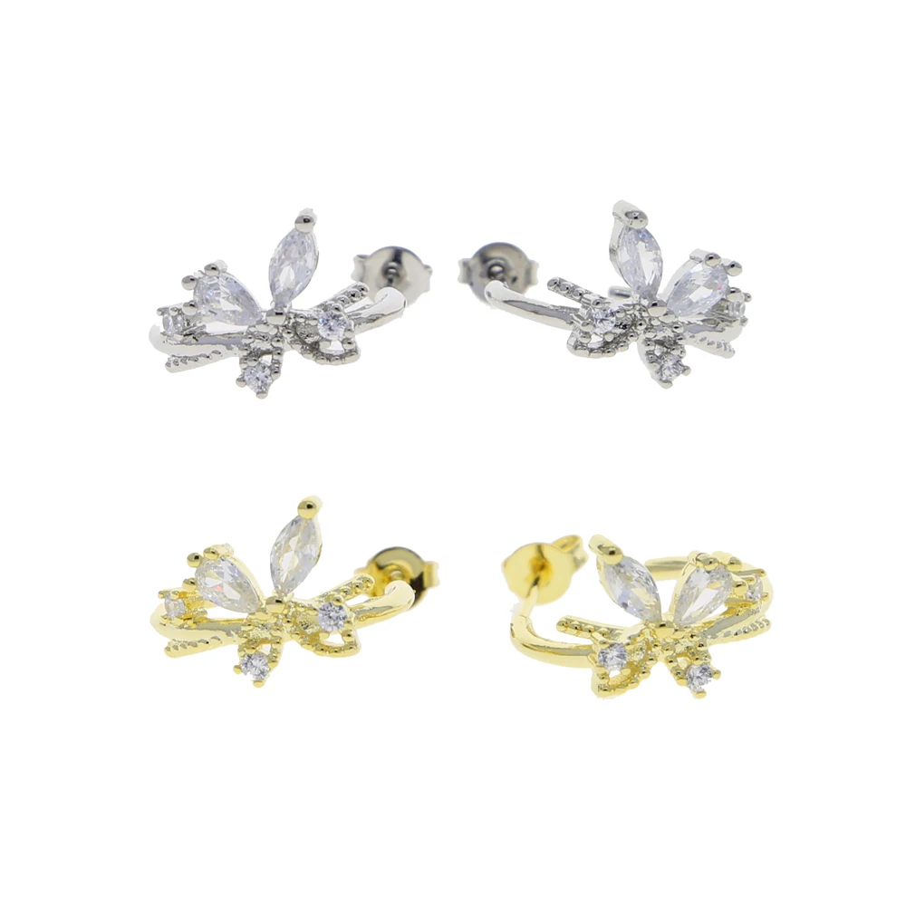Золотой цвет 5A кубический цирконий круглый фианит обруч милое симпатичное животное обруч бабочка серьги для девочки
