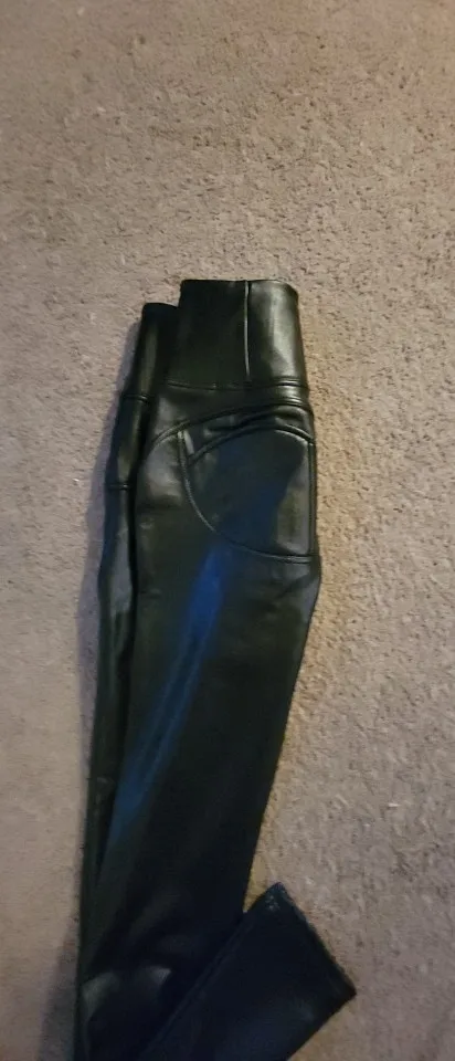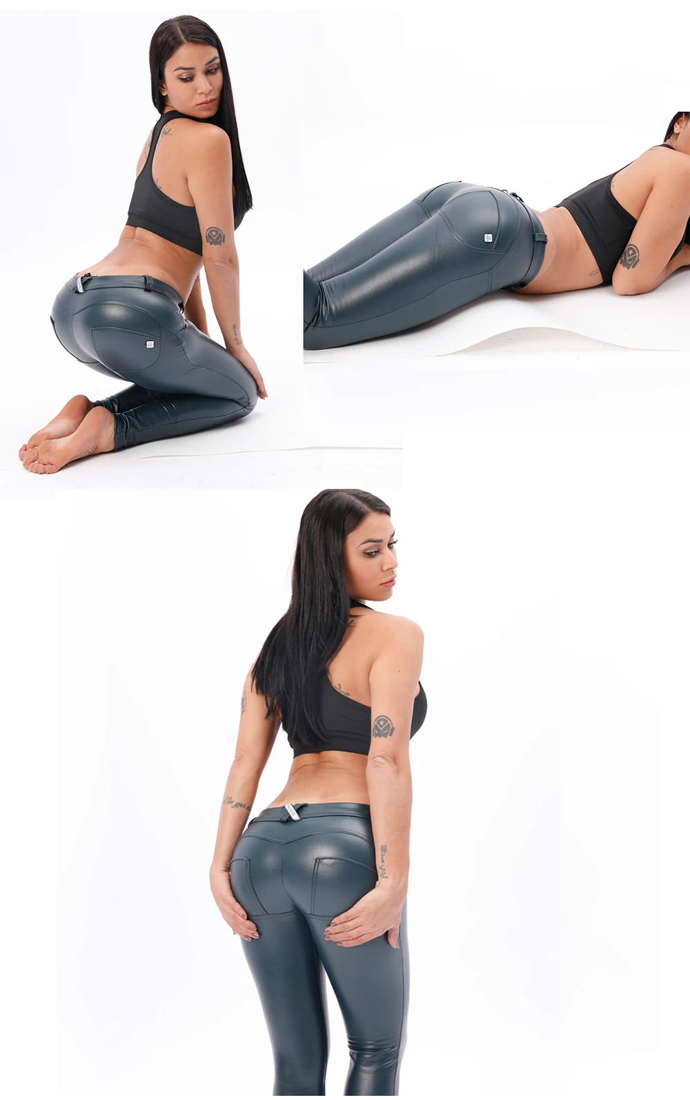 Кожаные брюки с высокой талиейсредней талией, черные облегающие брюки для фитнеса, женские тренировочные удобные утягивающие штаны без ног