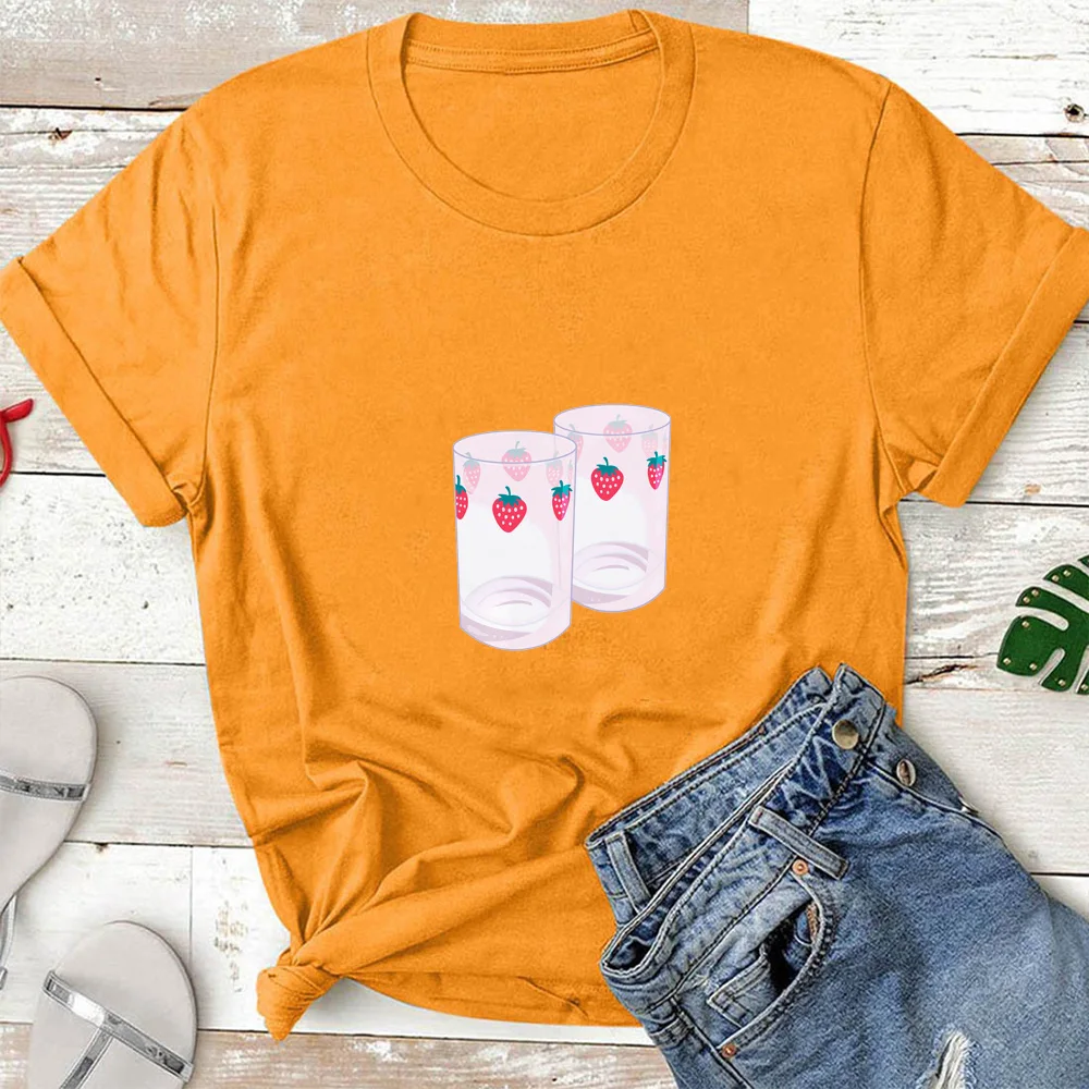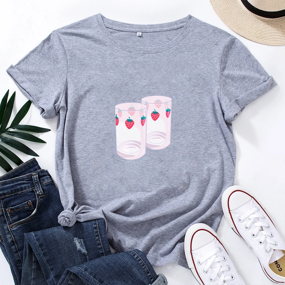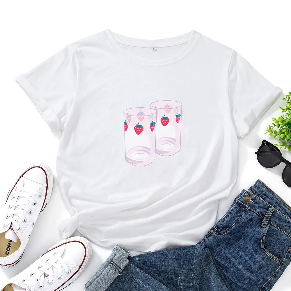 Женская футболка с рисунком клубники и Кубка аниме, топ, футболки с японским аниме, летние женские повседневные футболки в стиле Харадзюку с принтом манги, футболки