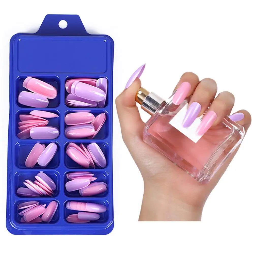 100 шт.компл. искусственные акриловые накладные ногти, однотонные длинные балерины, накладные ногти, УФ-гель, полное покрытие, маникюр, красота, сделай сам