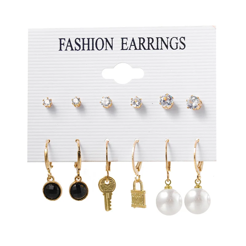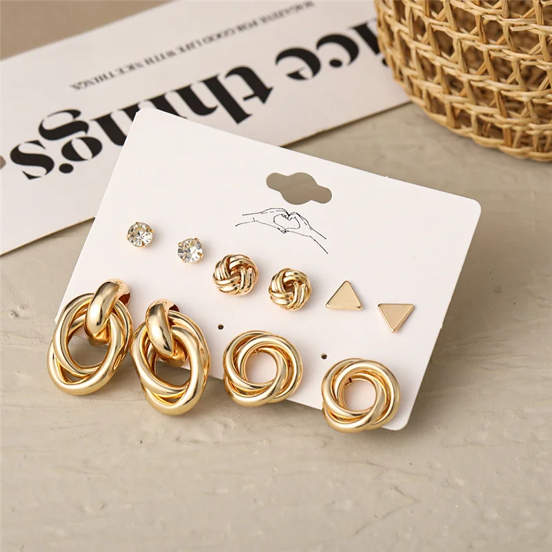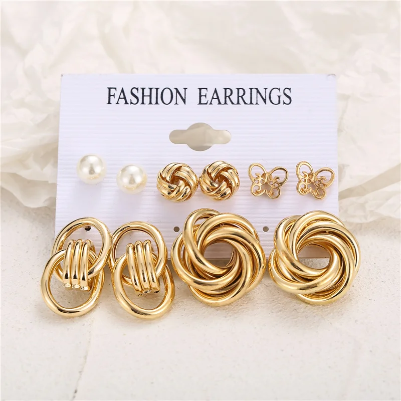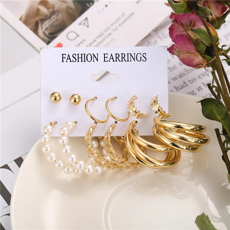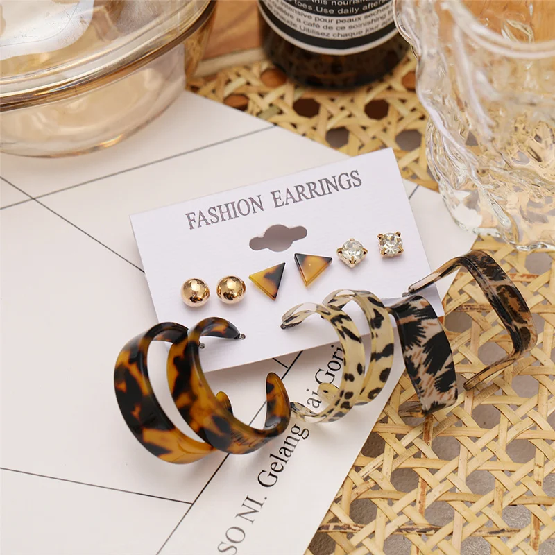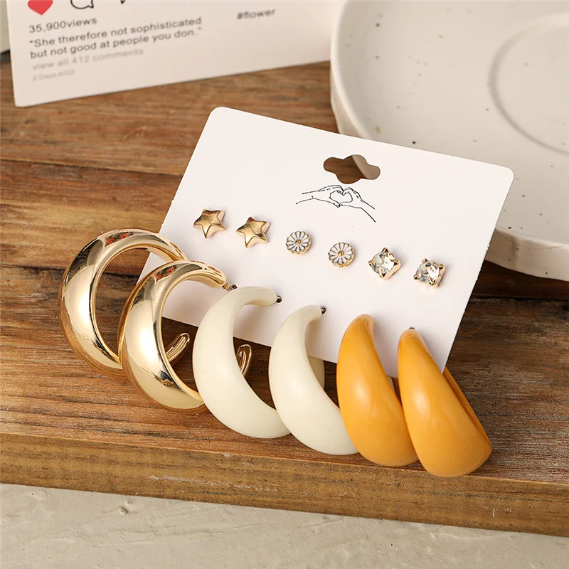 Набор серег 5 пар, простые серьги из акрилового сплава с металличес...