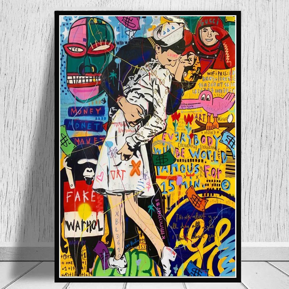 Современный коллаж Бэнкси, граффити, домашний декор, холст, настенн...