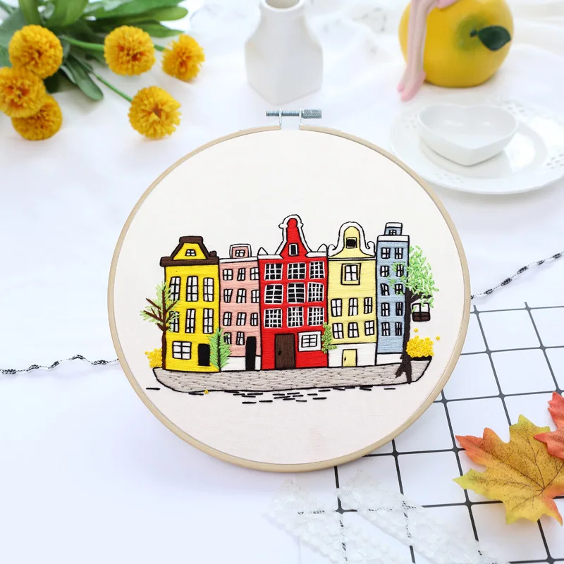 Набор для вышивки с городским пейзажем, сделай сам, рукоделие, Современный Узор, рукоделие для начинающих (без обруча)