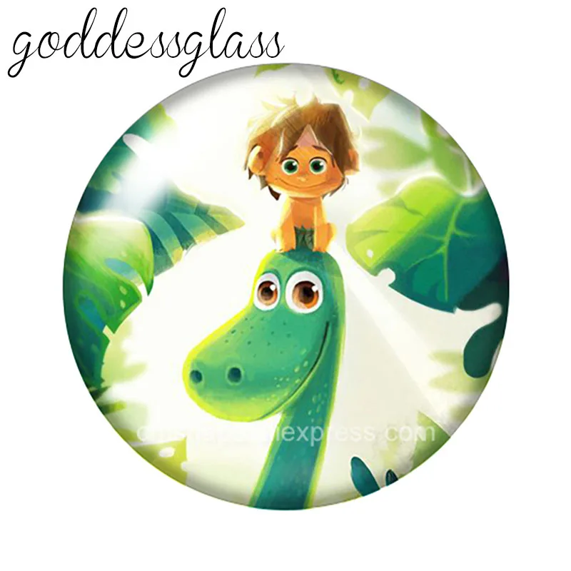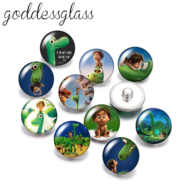 10 шт., круглые стеклянные пуговицы с фотографиями динозавров из мультфильма Disney, для браслетов 18 мм