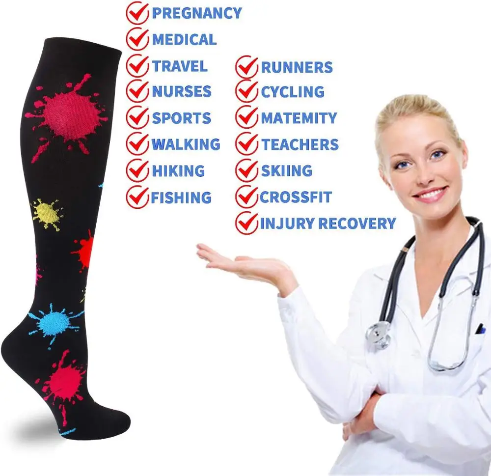 Носки мужскиеженские компрессионные до колена, спортивные чулки с геометрическим узором, защита от усталости, снятие боли, для бега, 58 стилей