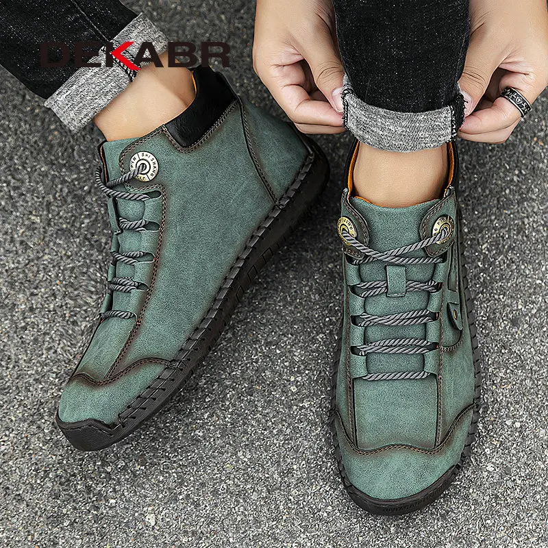Мужские кожаные ботинки DEKABR, износостойкие ботинки ручной работы, повседневная обувь с высоким берцем, размеры 38-48, для зимы