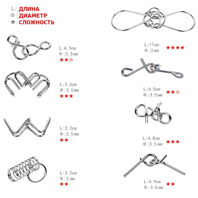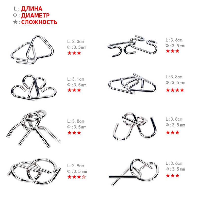 8 шт.компл. пазл из металлической проволоки IQ Mind, головоломка, и...