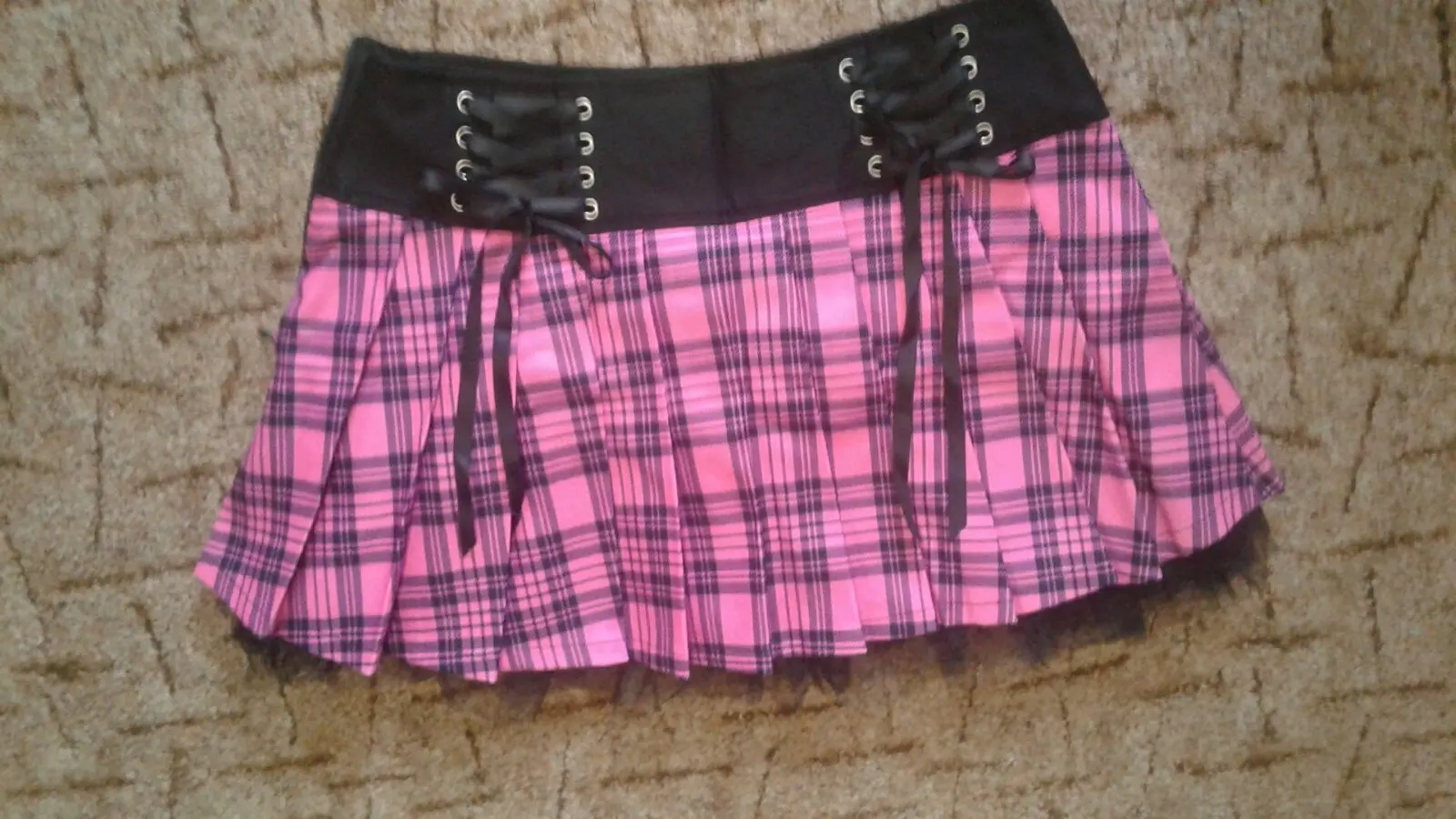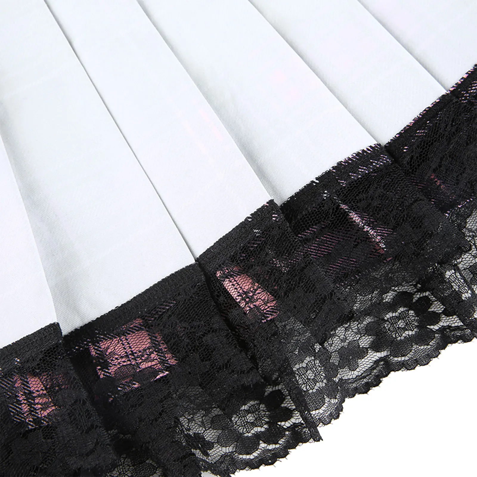 Женская плиссированная юбка Goth Y2K, юбка с высокой талией на шнуровке в стиле ретро, сетчатая юбка с принтом в клетку и кружевной отделкой, уличная одежда для девушек
