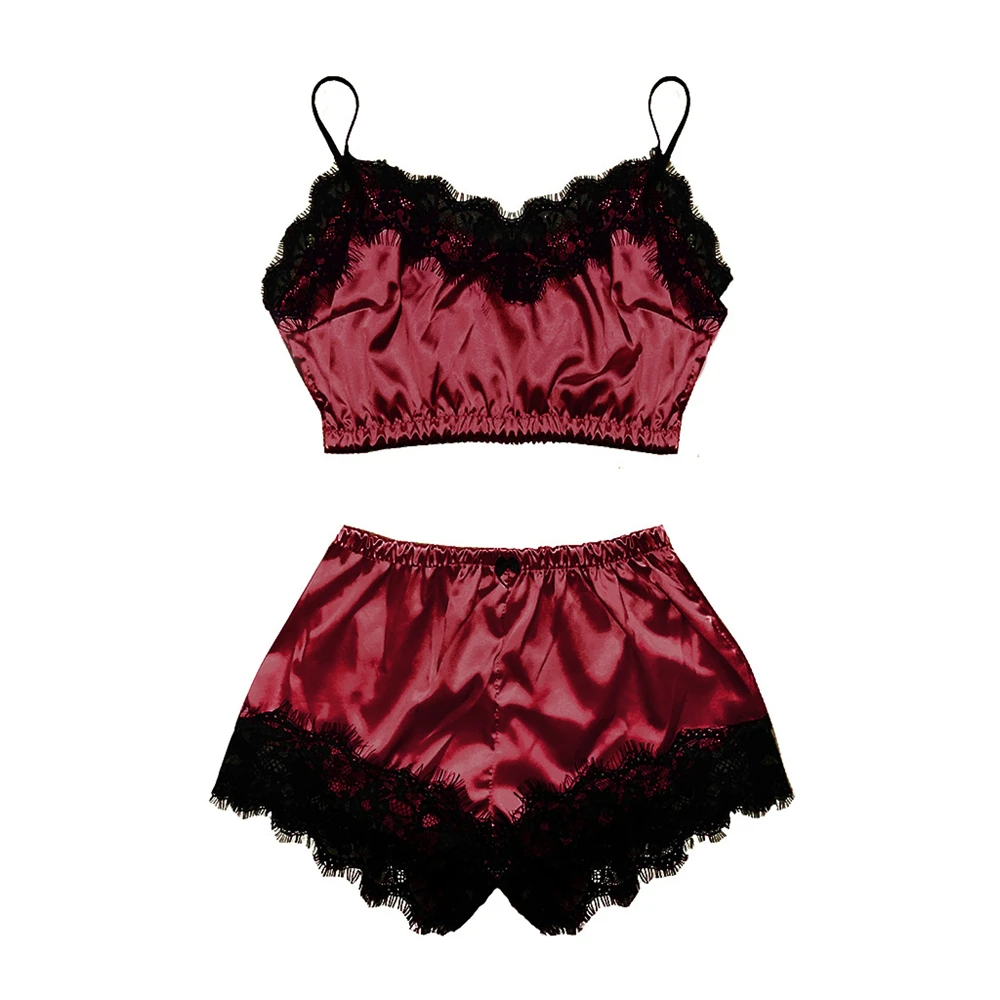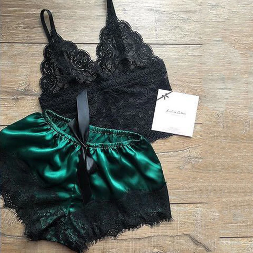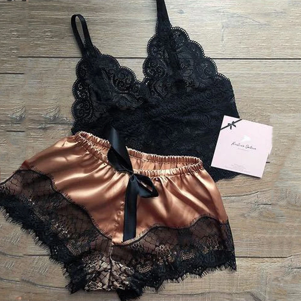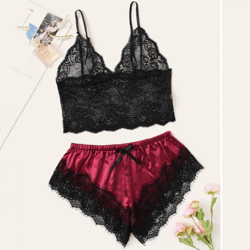 Сексуальное нижнее белье, кружевная одежда для сна, женские пижамные комплекты, соблазнительная ночная рубашка, милый топ на бретельках и шорты, пижама, женский домашний костюм