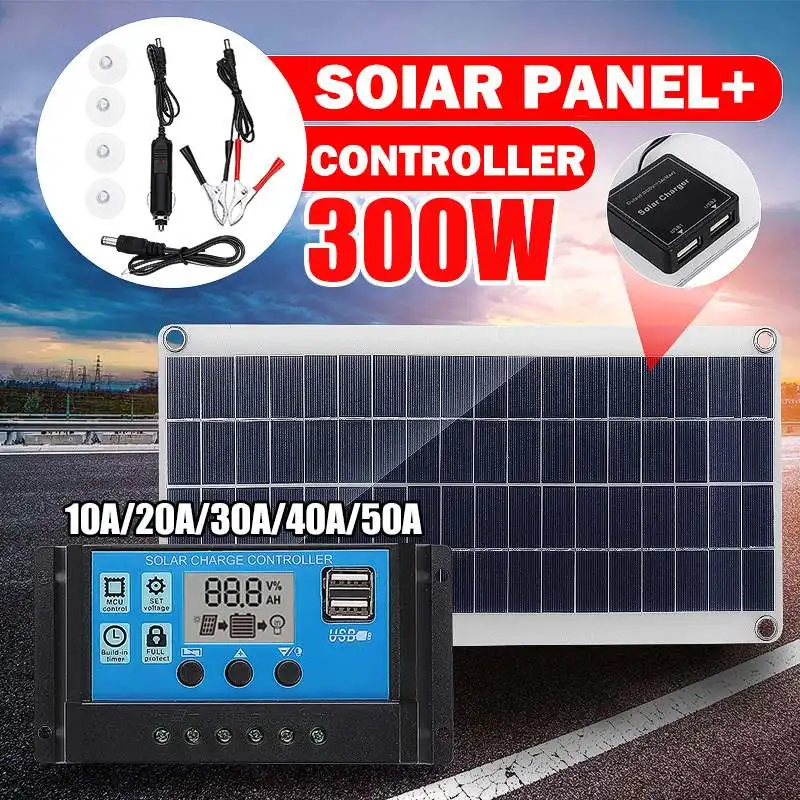 Гибкая солнечная панель 300 Вт, солнечные батареи 12 В, солнечная батарея 50A-10A, модуль солнечного контроллера для автомобиля, RV, лодки, дома, крыши, фургона, кемпинга