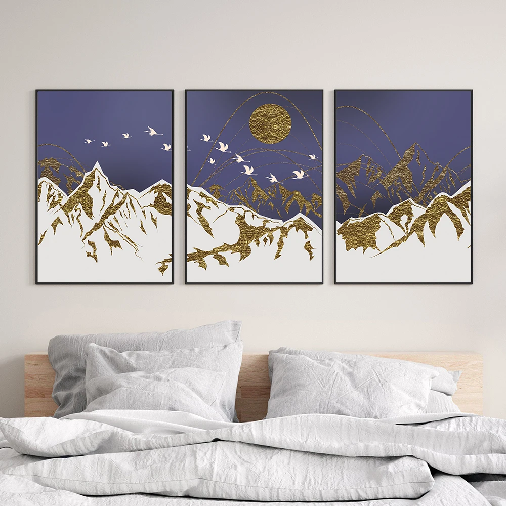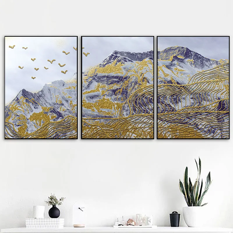 3 шт. постер золотого абстрактного пейзажа снега гор геометрический треугольник круглая Настенная картина холст живопись домашний декор