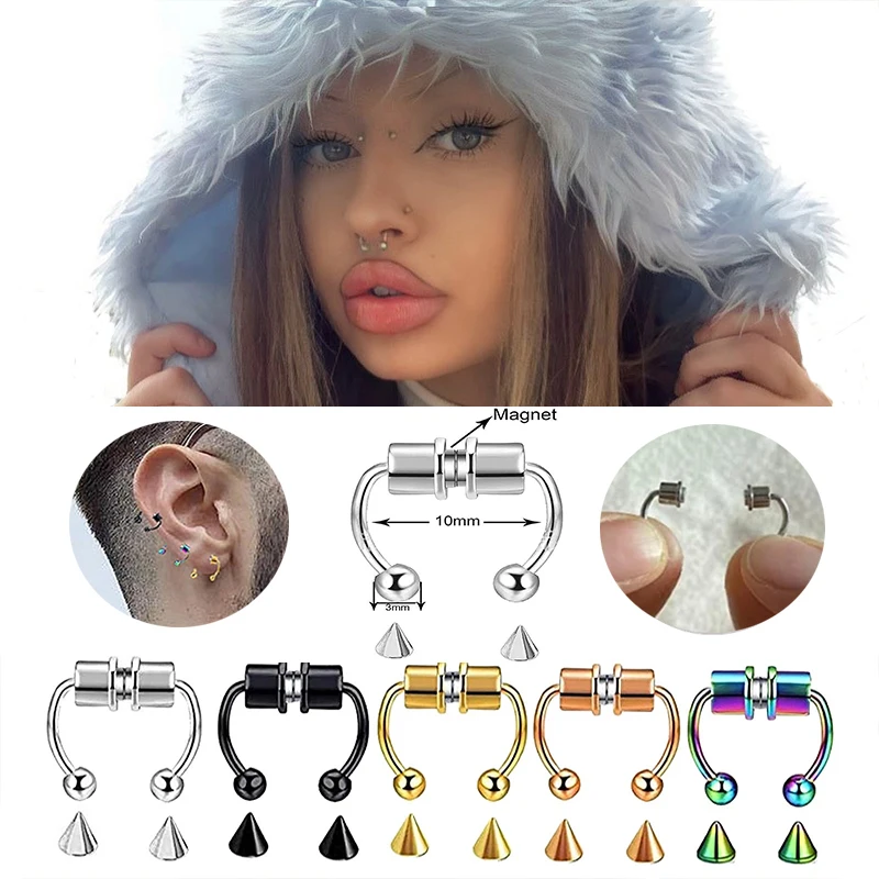 Набор из 3 зажимов для имитации кольца в нос из нержавеющей стали, многоразовый магнит для имитации пирсинга в носу для женщин, ювелирные изделия для пирсинга