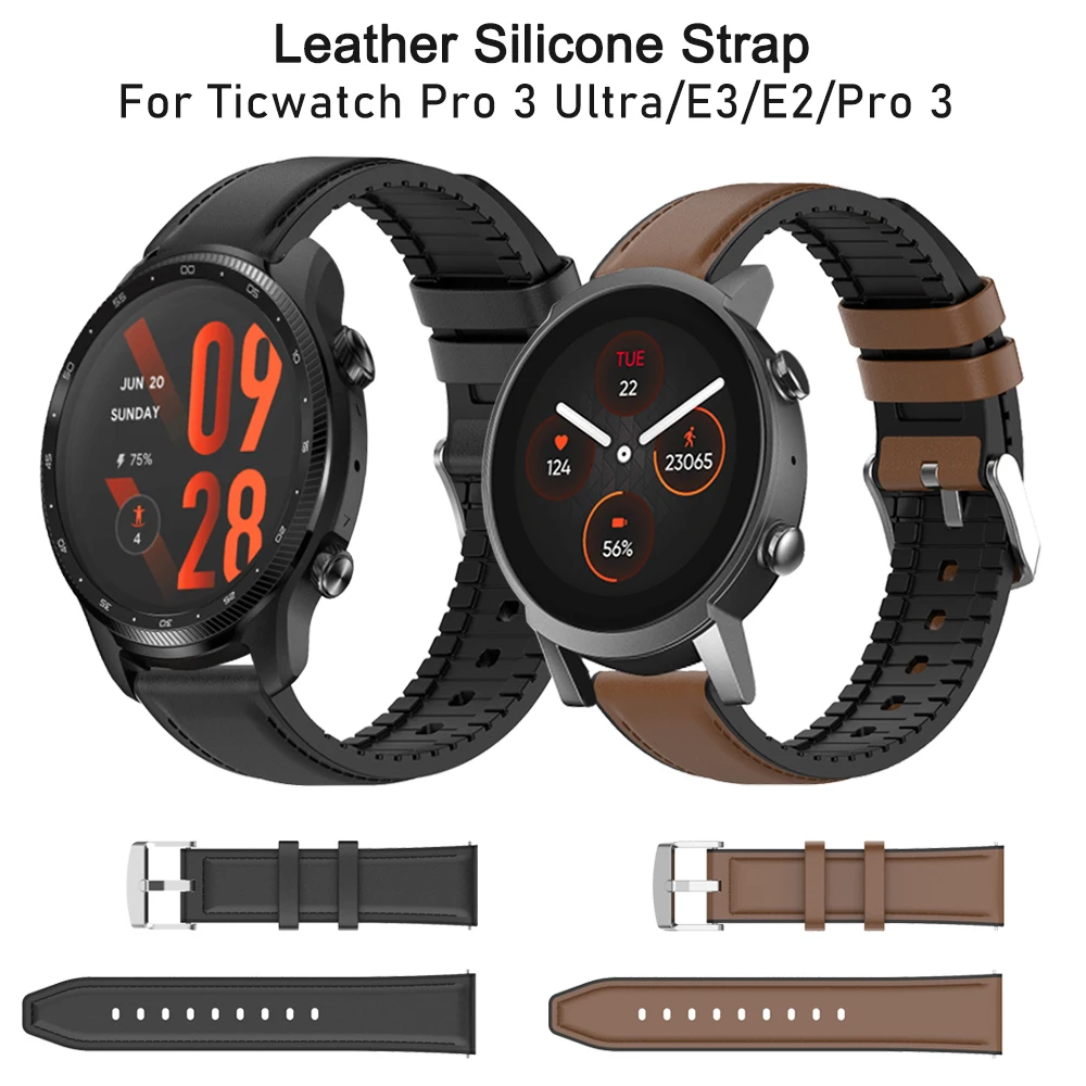 Ремешок кожаный для Ticwatch Pro 3 ultra Gps, сменный Браслет для часов Ticwatch E3E2 GTH, аксессуары для часов