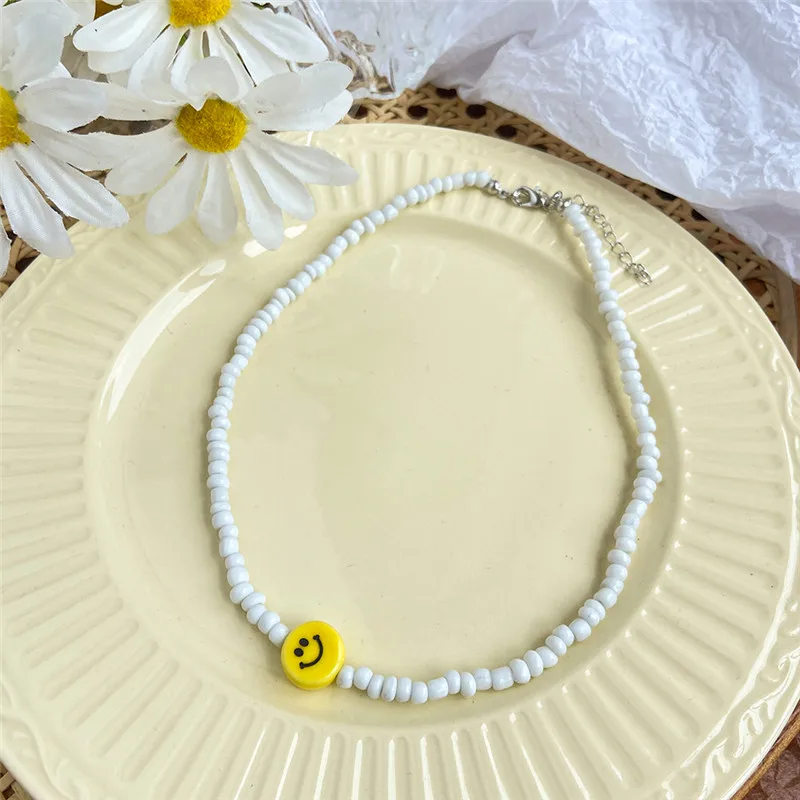 Женская короткая цепочка до ключиц со смайликом, неправильное ожере...
