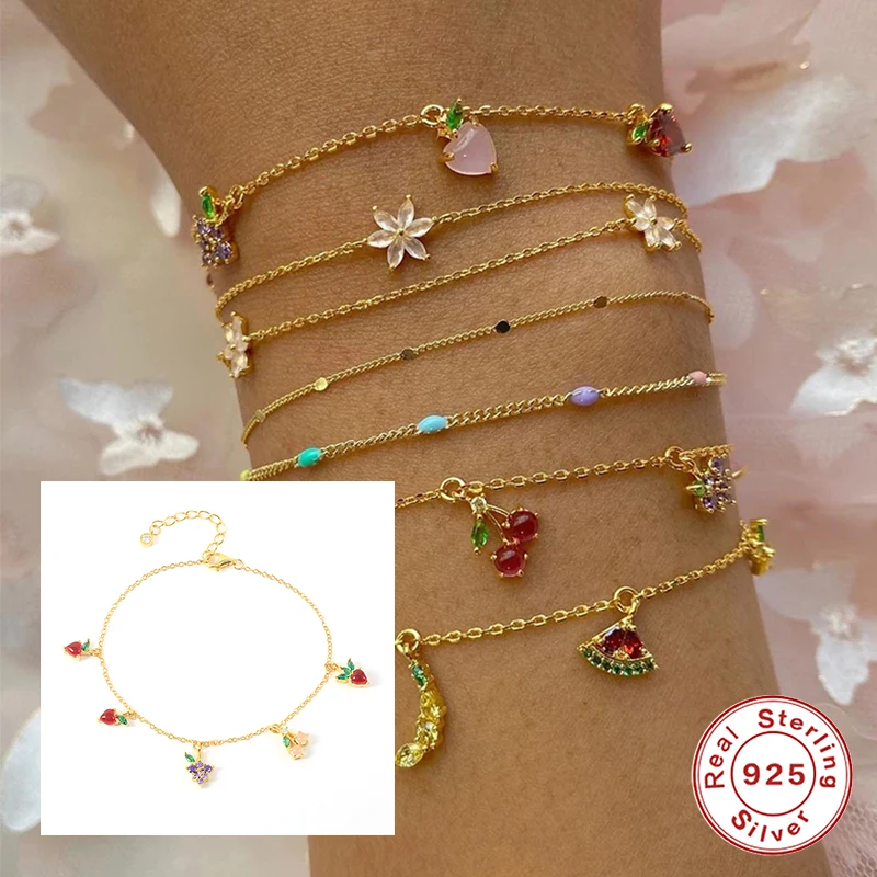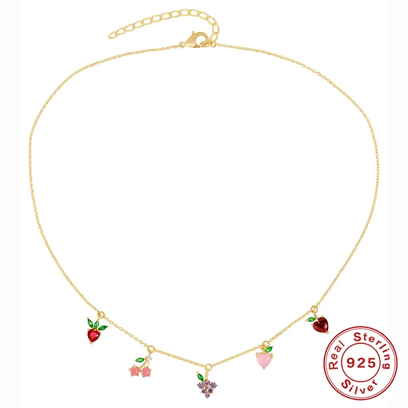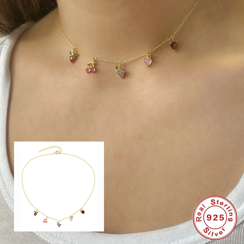 Aide, ожерелье из стерлингового серебра 925 пробы для женщин, лето 2021, цветное ожерелье фрукты, очаровательные цепочки, изысканные ювелирные изделия, чокер, Femme Trend