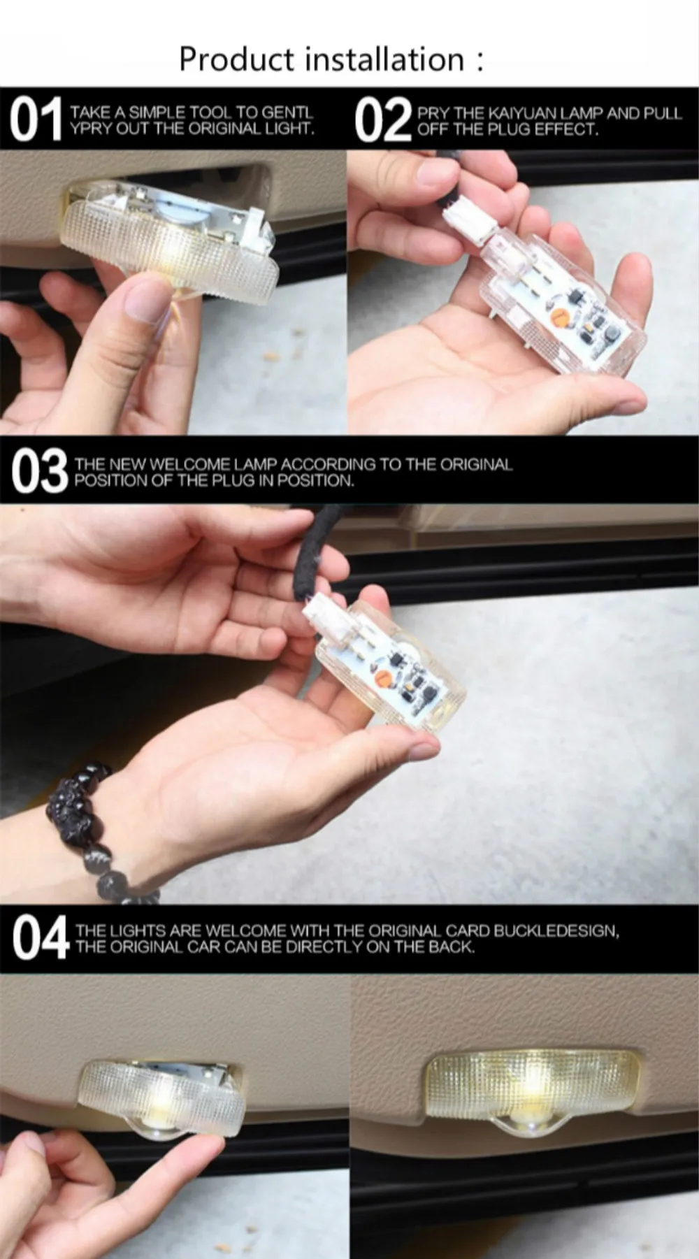 У вашего автомобиля должен быть оригинальный внутренний светильник для дверей, иначе вы не сможете зафиксировать этот автомобильный светильник для дверей внутри двери автомобиля!