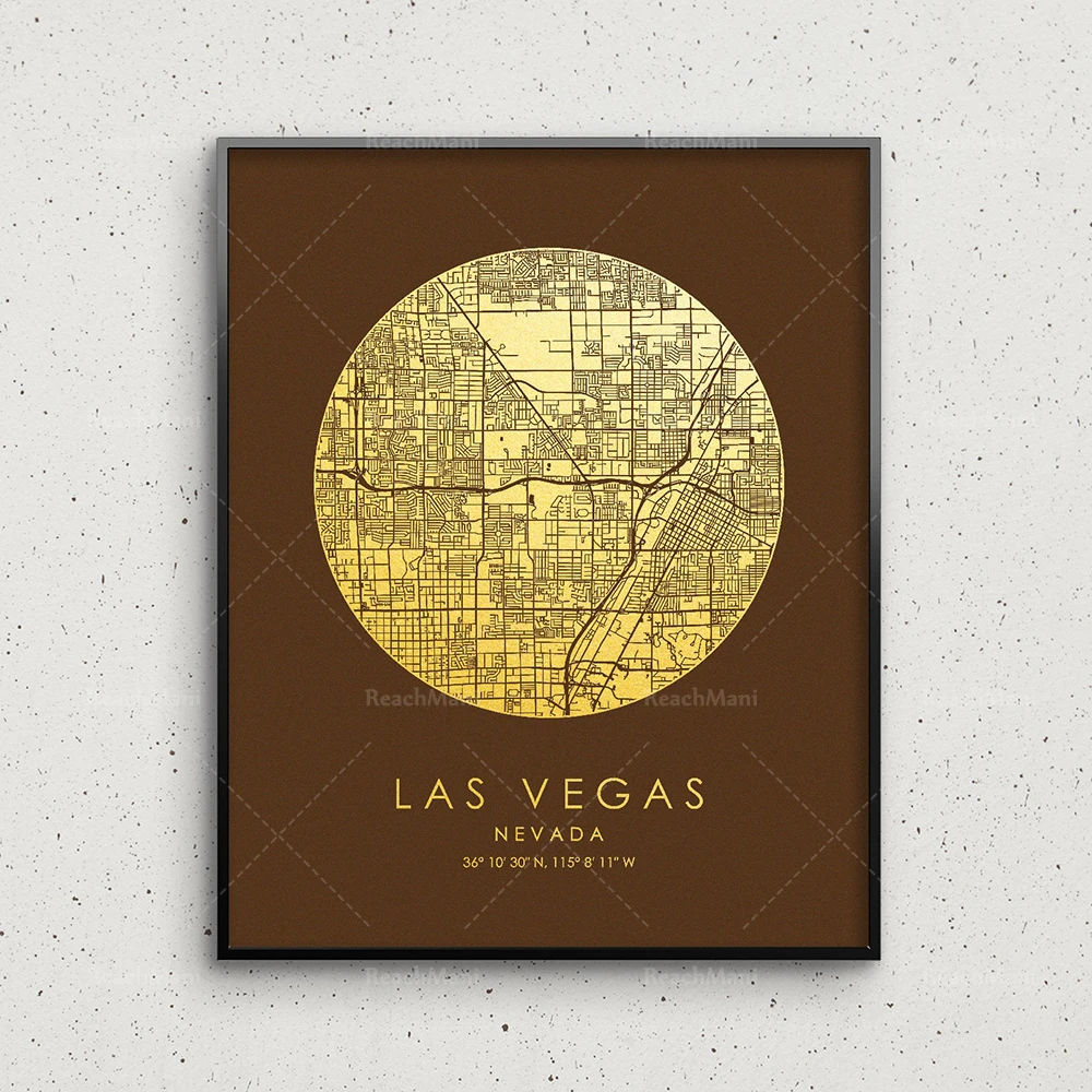 Карта Лас Вегаса Золотая и серебряная печатная карта города круглая фотография Соединенные Штаты icon star icon star icon star icon star icon star