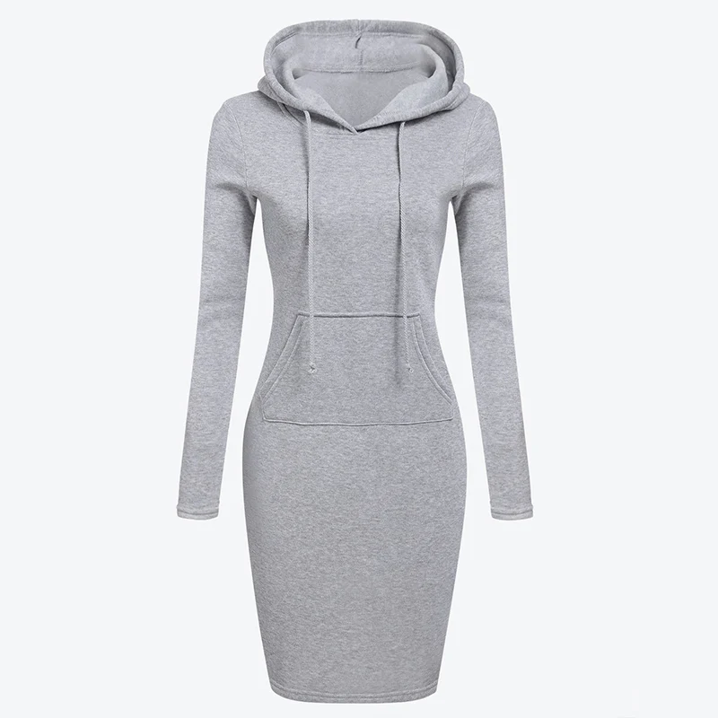 Осенне-зимнее хлопковое платье с капюшоном, женское облегающее модное платье-свитшот, платья для женщин с карманами и капюшоном, Повседневное платье миди с длинным рукавом
