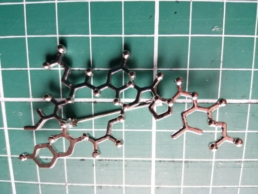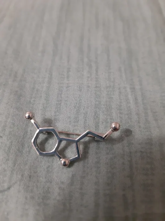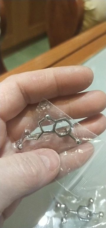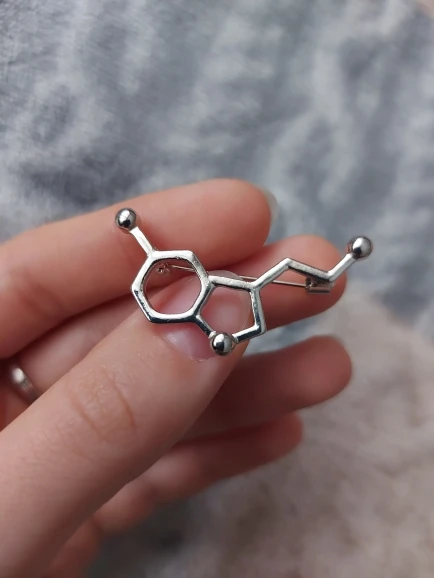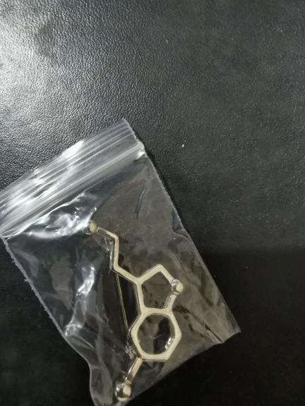 Такая классная булавочка с молекулой серотонина! Брала себе, сын тут же утащил :)