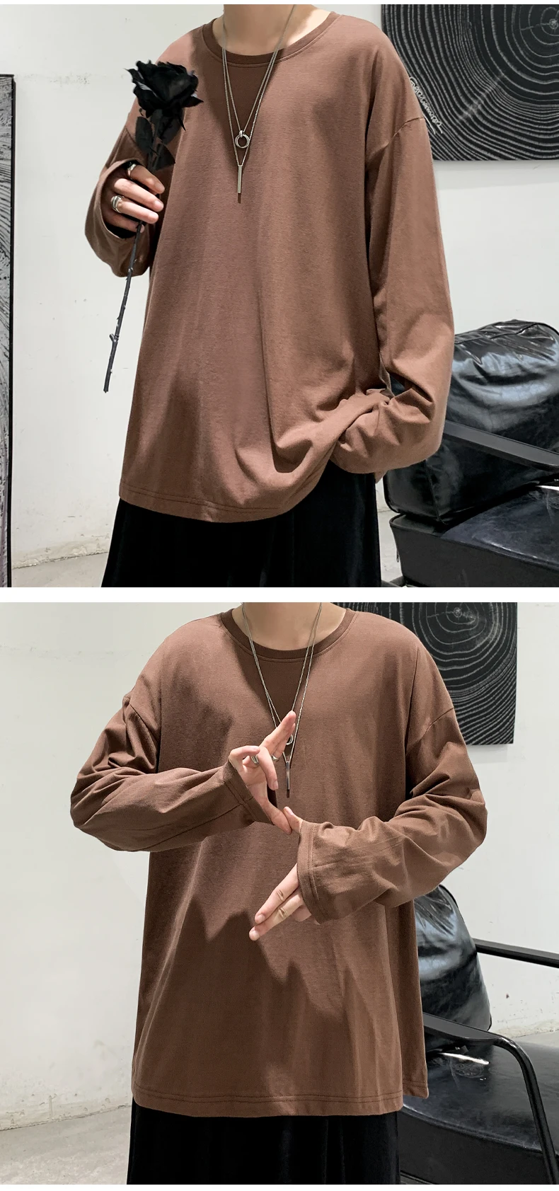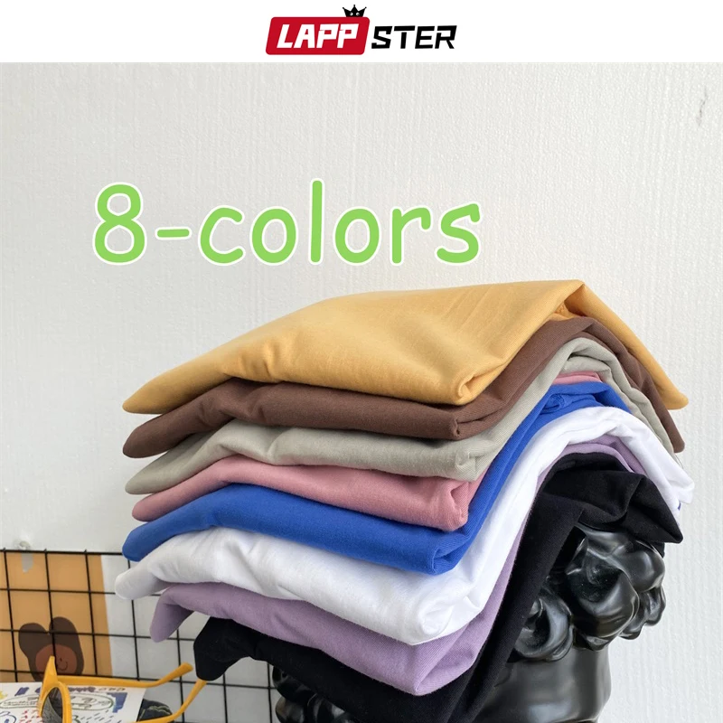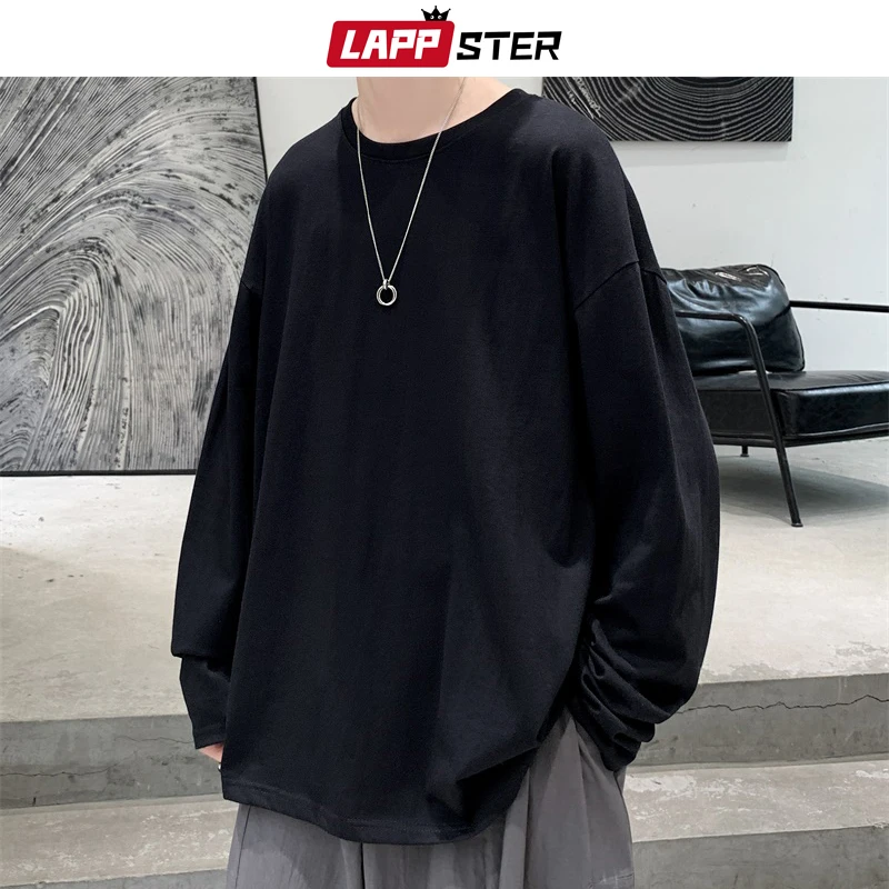 Футболка LAPPSTER мужская оверсайз в стиле Харадзюку, однотонная винтажная уличная одежда с длинным рукавом, Повседневная рубашка в стиле K-POP, 8 цветов, 2022