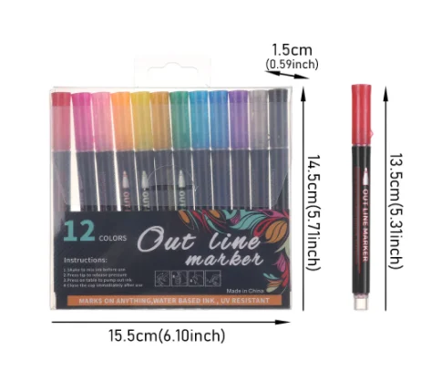Новый 24 цвета s двойная линия контурная ручка набор металлический цвет хайлайтер магический маркер ручка для художественной живописи письма школьные принадлежности