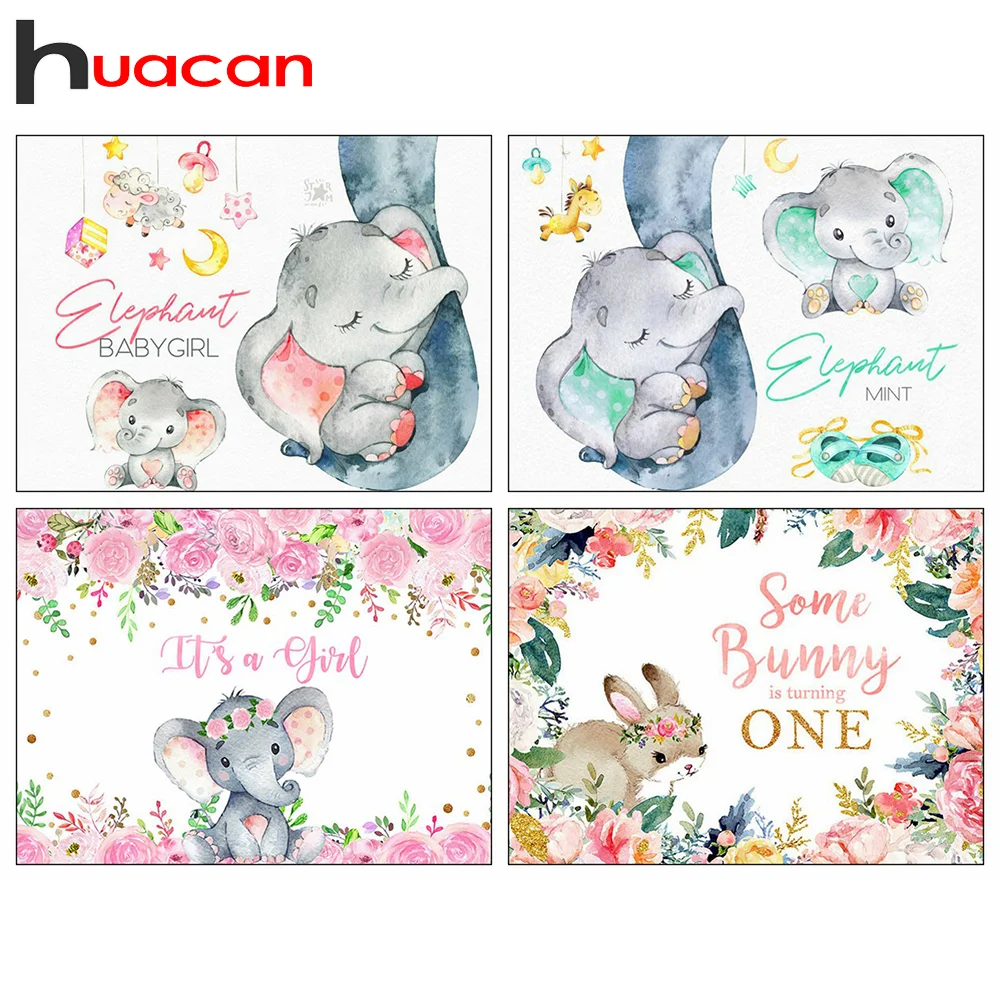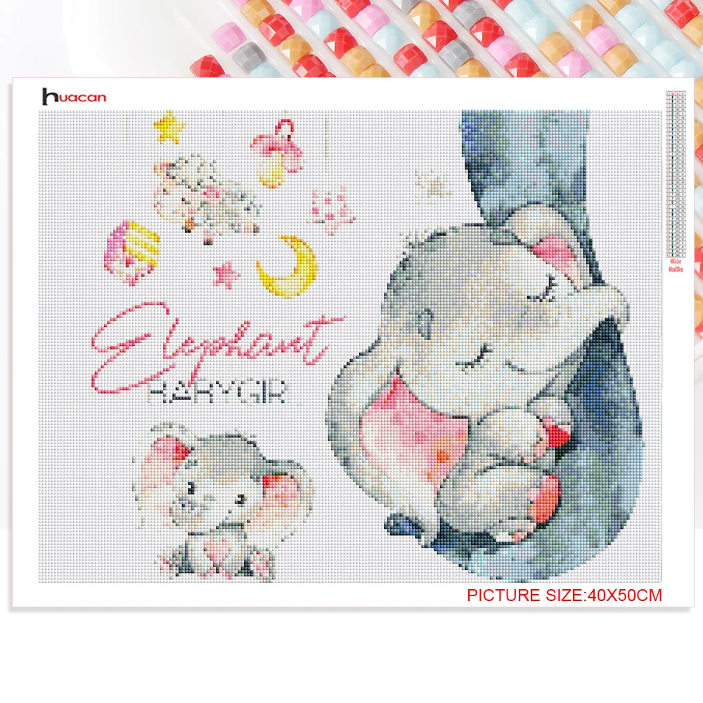 Алмазная 5D Вышивка Huacan сделай сам, вышивка крестиком, мультяшный слон, полноразмерная мозаика с изображением животных для мальчиков и девочек