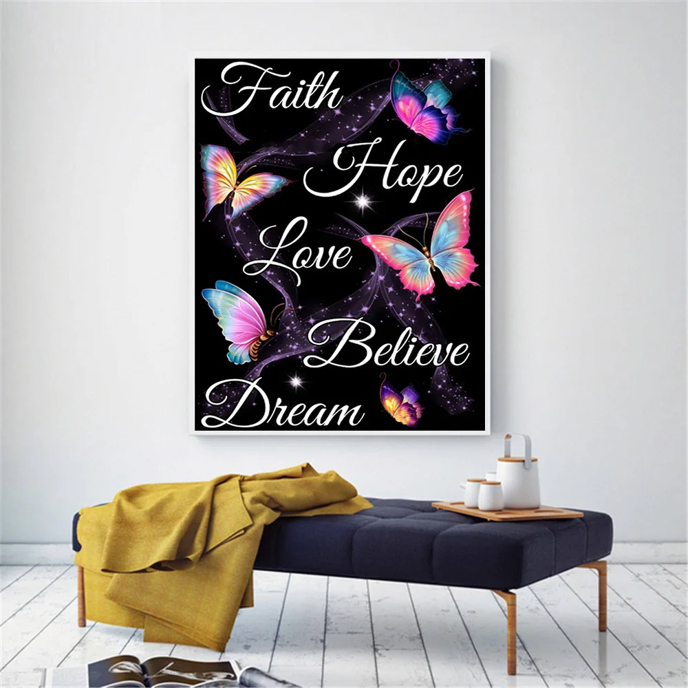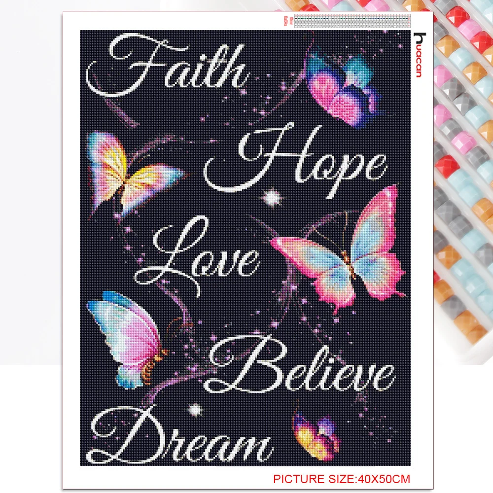 Картина 5D из страз Huacan, квадратная мозаика, Бабочка, текст, алмазная вышивка бисером, любовь, день рождения, животное, бисерные картинки