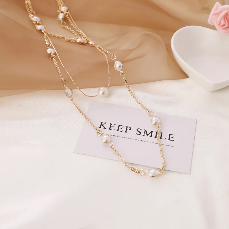 Женское многослойное ожерелье-чокер с жемчужной подвеской