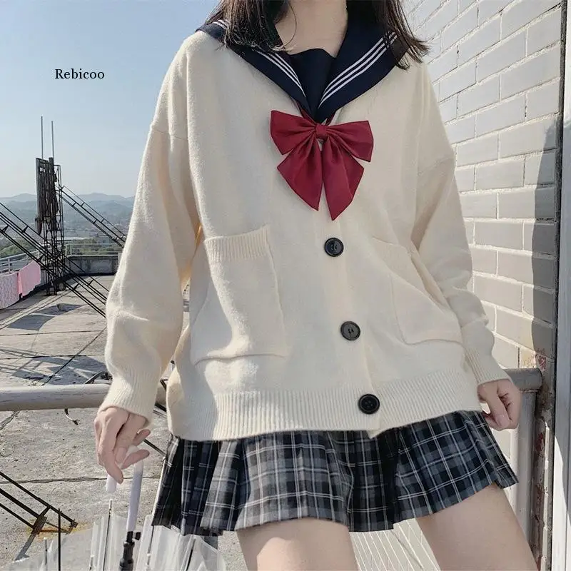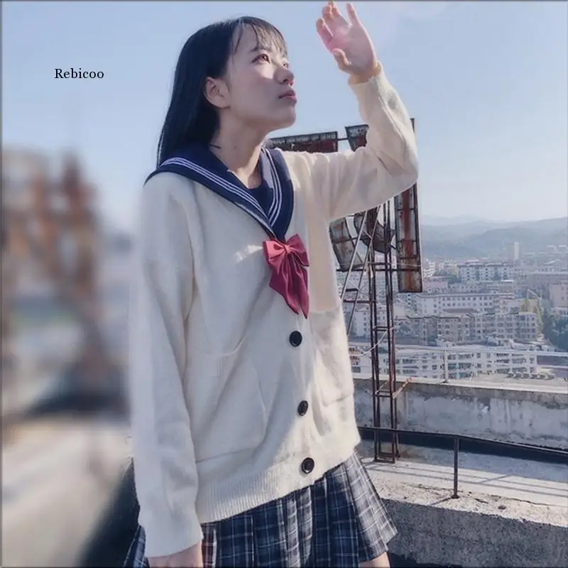 Японский Корейский модный школьная форма матроска для девочек кардиган косплей костюм свитер аниме студенческий костюм для колледжа Молодежная Чистота