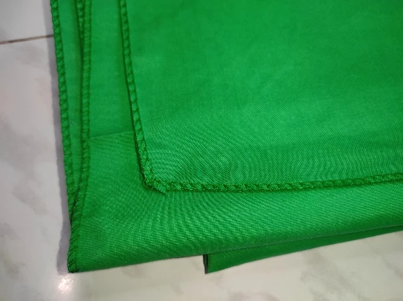 хороший хромакей. ткань легкая,но не просвечивает. края обработаны. доставили очень быстро через 5post. брака нет. буду заказывать теперь чёрный и белый фон . Продавца рекомендую. дополню отзыв и фото, когда придут стойки, что-бы показать как выглядит на деле.