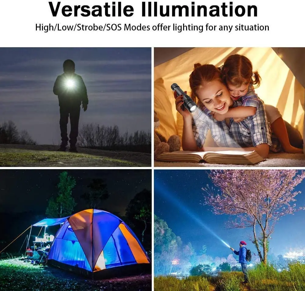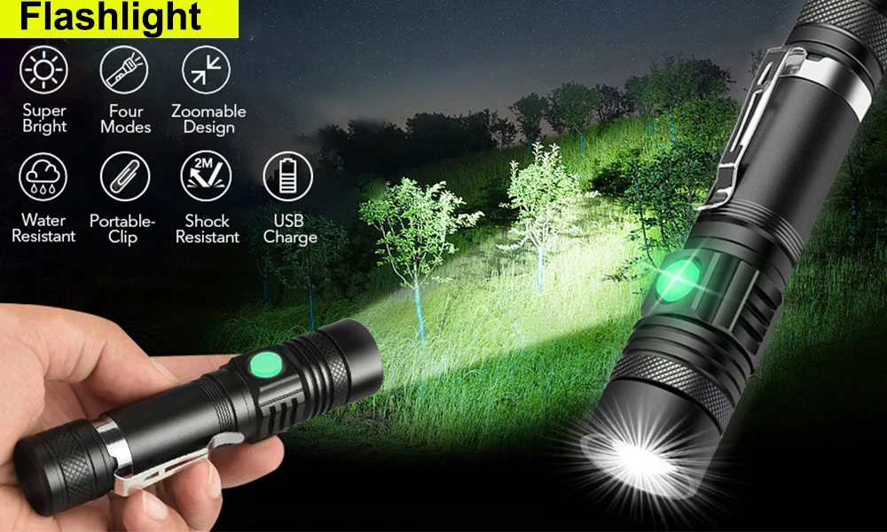 Супер яркий фонарик, высокий люмен--- High Lumen светодиодный тактический вспышки светильник L2 T6 супер яркий светодиодный поставляется с высокой светоотдачей, что в 10 раз ярче, чем старый накаливания светильник s; широкий выбор режимов светильник и алюминиевый корпус делают этот Тактический осветительный светильник самым ярким и универсальным в своем классе.USB Перезаряжаемый фонарик, долговечный, защита от перезарядки---Заряжаемый от USB фонарик, требуется всего 3 часа, чтобы получить полную зарядку через любой usb-порт, этот перезаряжаемый фонарик с высоким люменом может достигать до 8 часов (низкий режим) рабочего времени; перезаряжаемый фонарик с батареей 18650, Светильник для вспышки прекратит зарядку при полной зарядке, так что вам не нужно беспокоиться о проблемах безопасности, когда вы забудете, что светильник для вспышки заряжается.Светодиодный масштабируемый фонарик, 4 режима---Мощный перезаряжаемый фонарик, легко вытягивает корпус фонарика, может получить широкое и узкое увеличение луча, что делает этот светодиодный фонарик идеальным для использования вокруг дома, прогулки с собакой или кемпинга. Тактический фонарик с высоким люменом имеет 4 режима: высокий/средний/низкий/Стробоскоп, стробоскоп будет держать вас в безопасности в любой ситуации.Небольшой перезаряжаемый водонепроницаемый фонарик--- IPX6 Водонепроницаемый фонарик, подходит для использования в дождевых, снежных или аварийных ситуациях. Небольшой светодиодный фонарик длиной менее 5 дюймов, обеспечивая высокую производительность, дальность луча до 600 футов, обеспечивает такой же световой поток, как и большие, более длинные фонарики. Этот небольшой мощный фонарик с карманом-зажимом, достаточно компактный, чтобы поместиться в карман, рюкзак или кошелек, не разрывая.