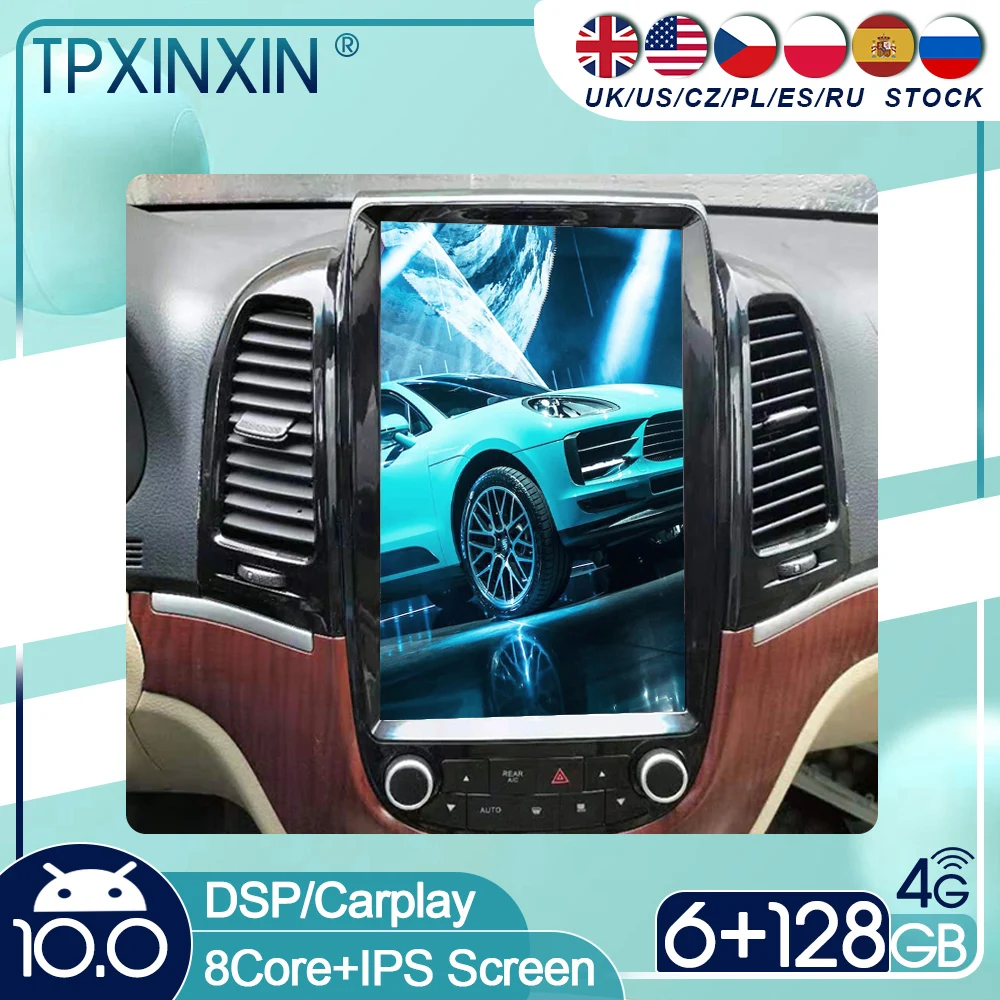 Автомобильная стереомагнитола для Hyundai Santa Fe 2006-2012 Android 10 с экраном, радио Тесла, мультимедийный плеер, GPS-навигация, головное устройство