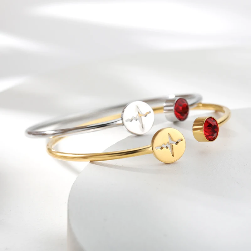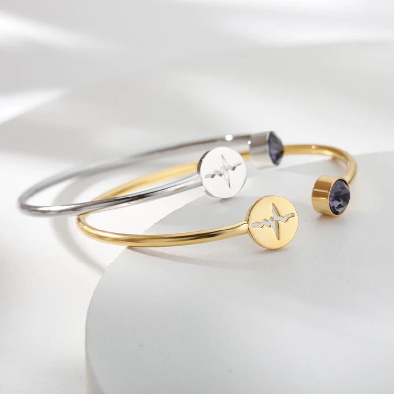 Женские браслеты из нержавеющей стали с сердечным ритмом и кардиограммой, хрусталь камень, Браслет-манжета, стетоскоп, ювелирные изделия, подарки для медсестры