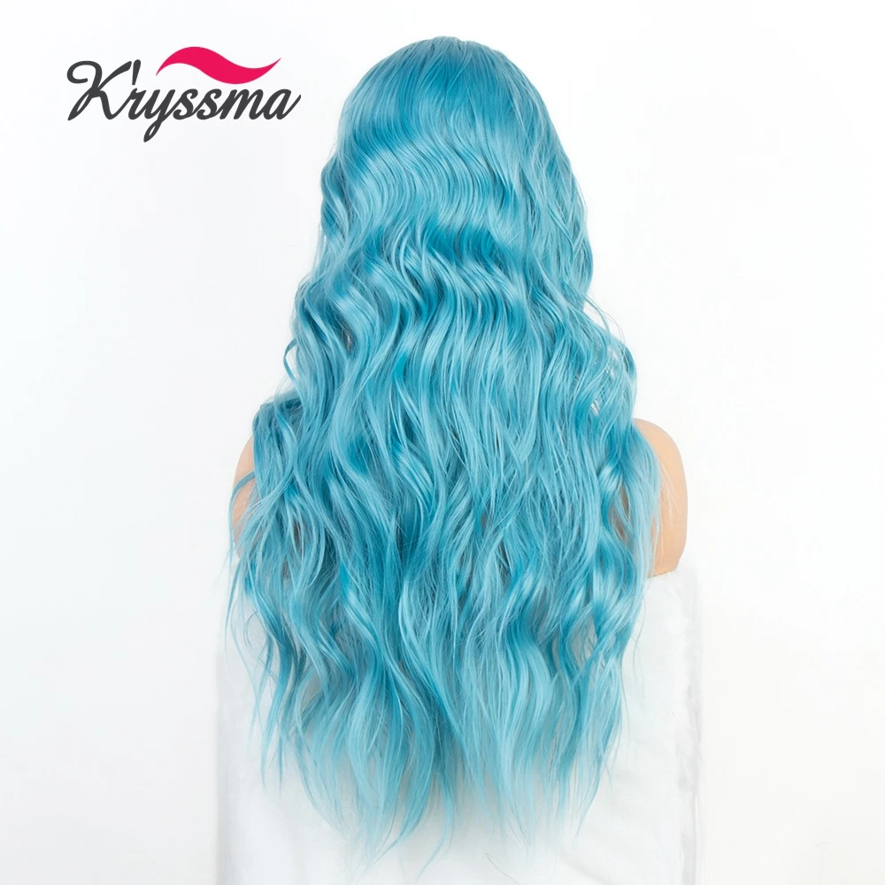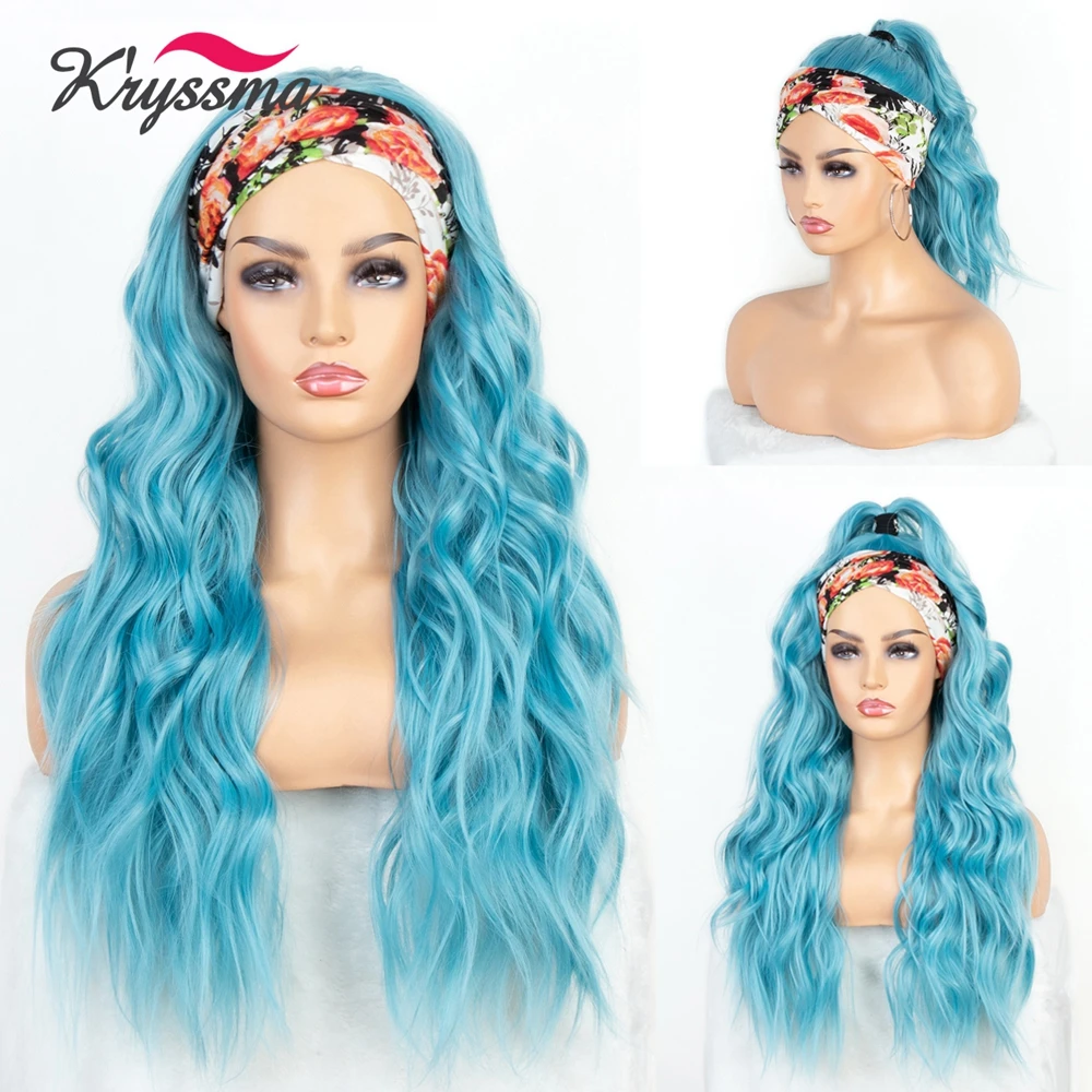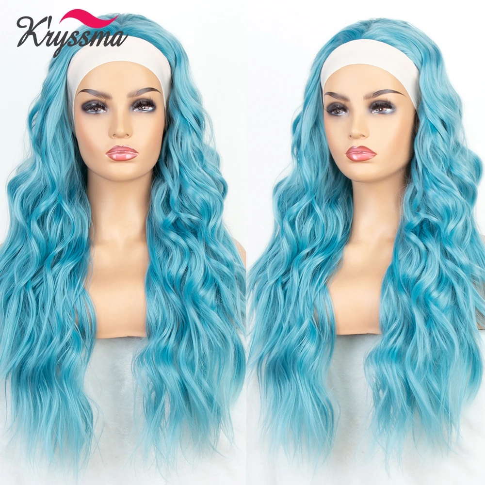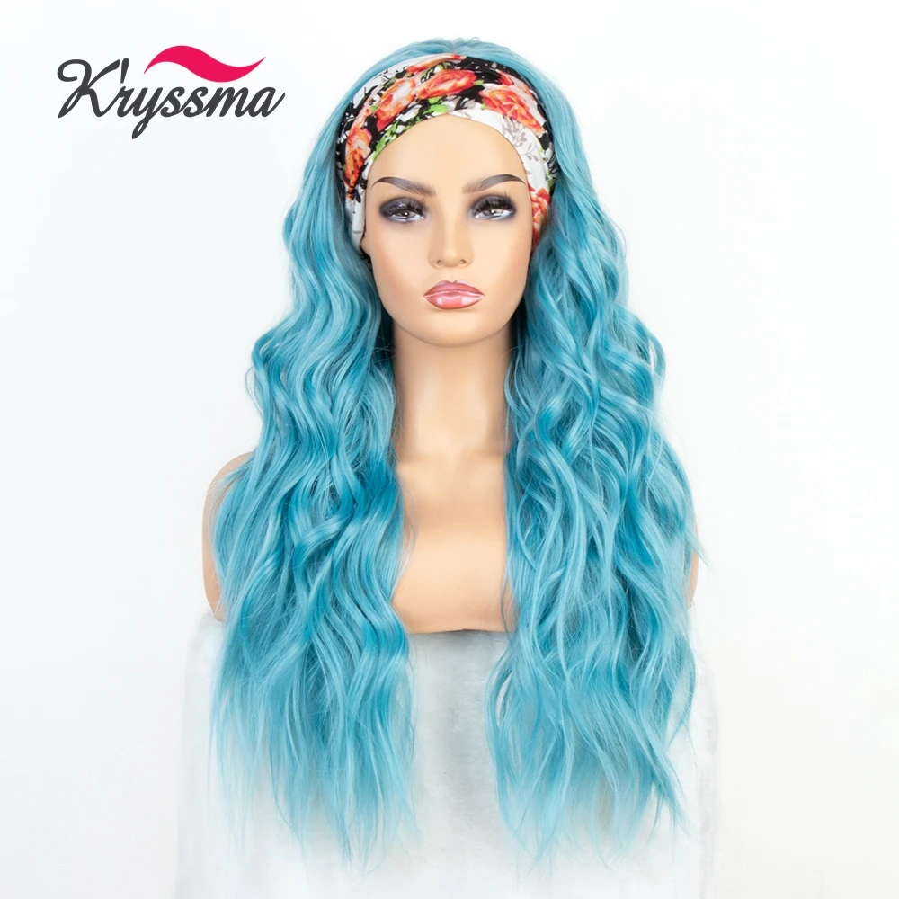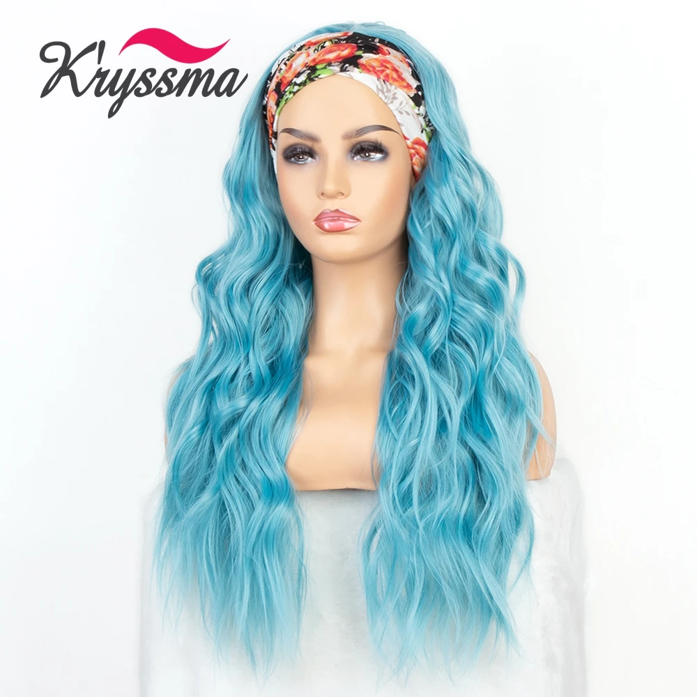 Голубая волнистая повязка на голову Kryssma, синтетические парики, термостойкие волосяные шарфы, Женская повязка на голову бесплатно для косплея